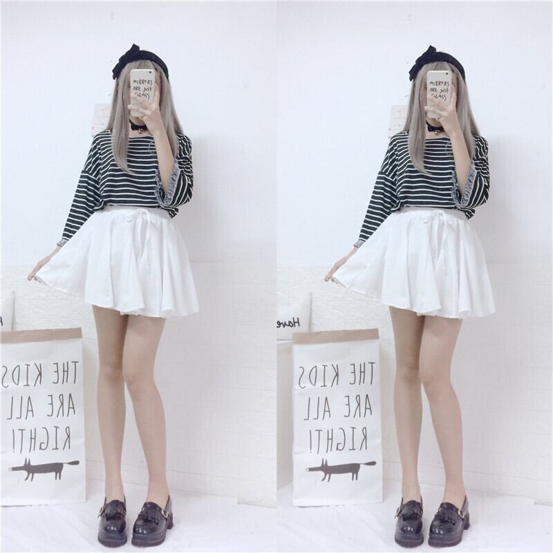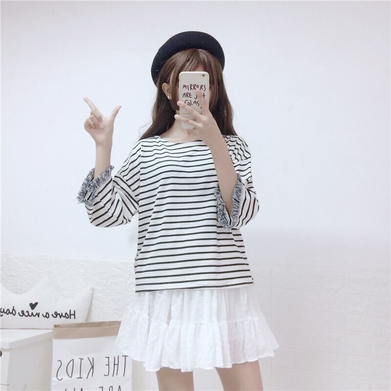 ✞ ラウンドネックストライプシャツ カジュアル 大人ガーリー スウィート キュート✞ゴスロリ SM ミリ 甘ロリ クラロリ 和ロリ エレガント 黒ロリ 姫ロリ 華ロリ BB-BB5922955