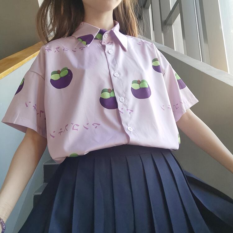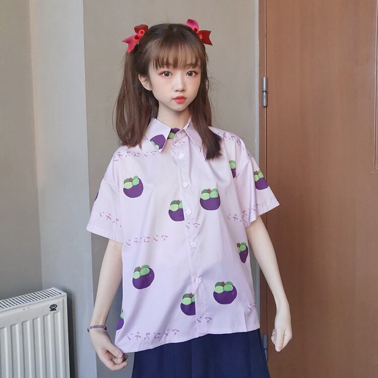 ✞ マンゴスチン♫プリントシャツブラウス スウィート キュート カジュアル ✞ゴスロリ SM ミリ 甘ロリ クラロリ 和ロリ エレガント 黒ロリ 姫ロリ 華ロリ BB-BB7719518
