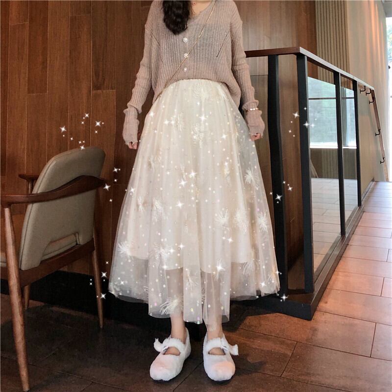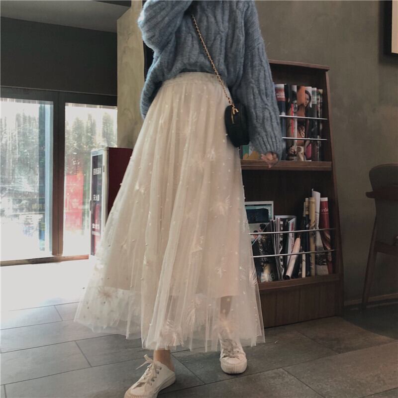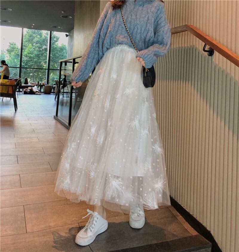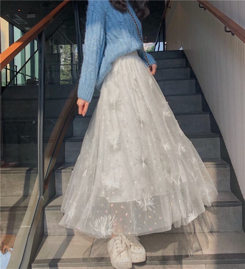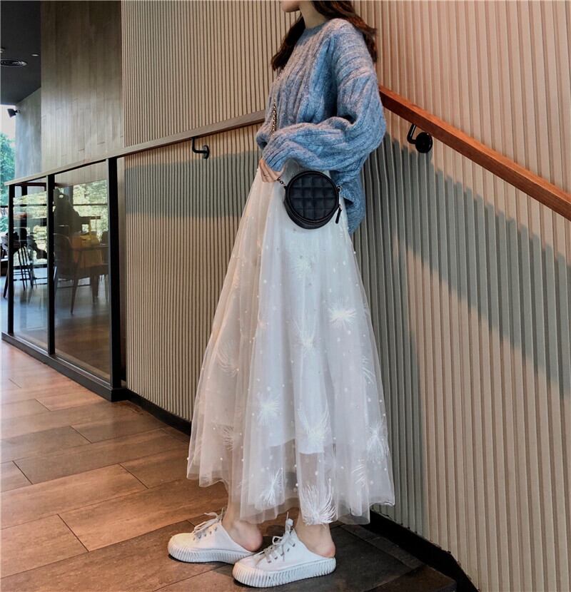 ✞ 花柄刺繍ホワイトメッシュ透け感ありスカート ✞ゴスロリ SM ミリ 甘ロリ クラロリ 和ロリ エレガント 黒ロリ 姫ロリ 華ロリ BB-BB3475019