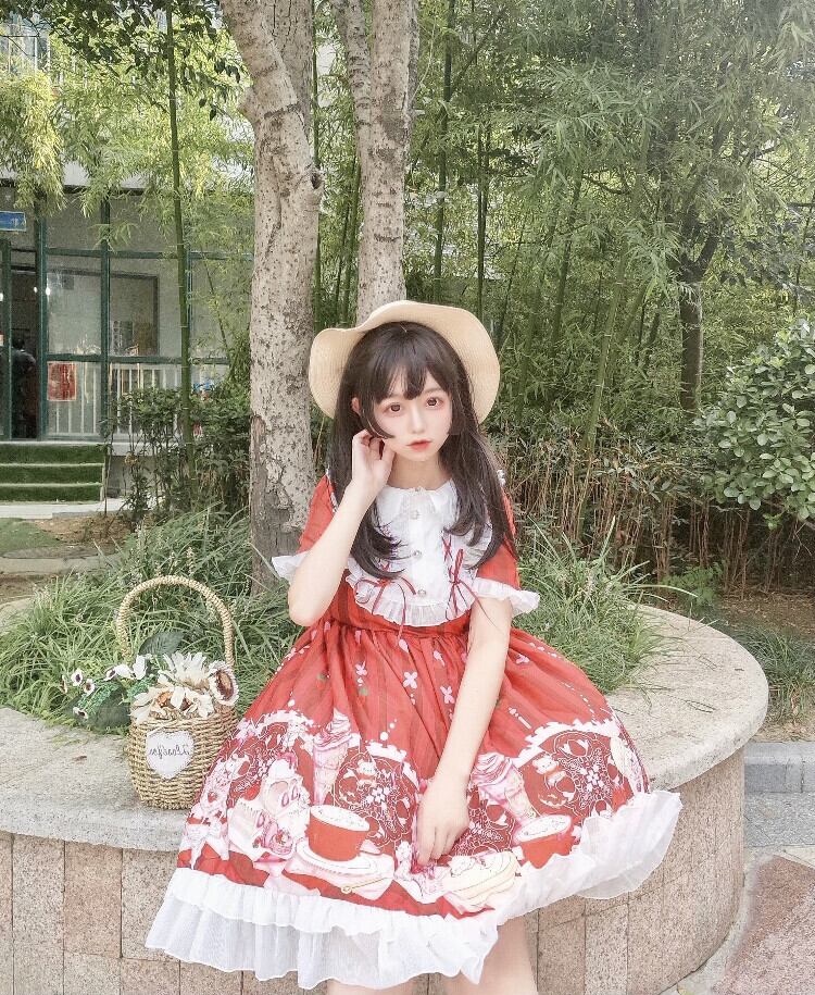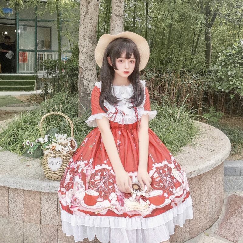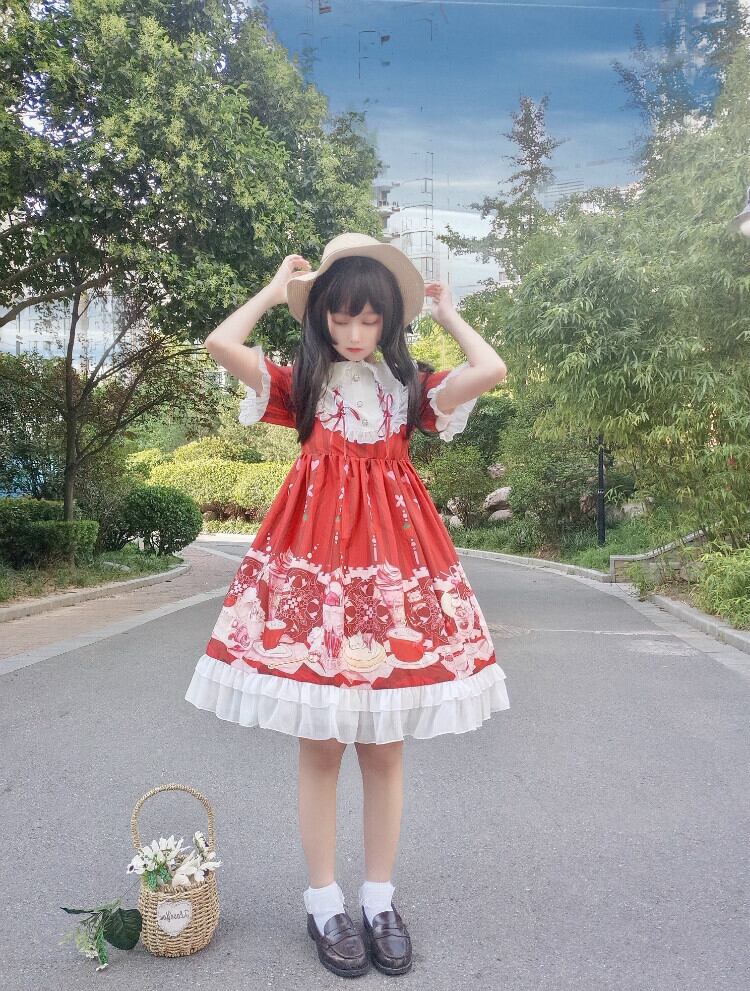 ✞ 甘めなお姫様プリント柄ティアードワンピース スウィート キュート カジュアル ✞ゴスロリ SM ミリ 甘ロリ クラロリ 和ロリ エレガント 黒ロリ 姫ロリ 華ロリ BB-BB5288284
