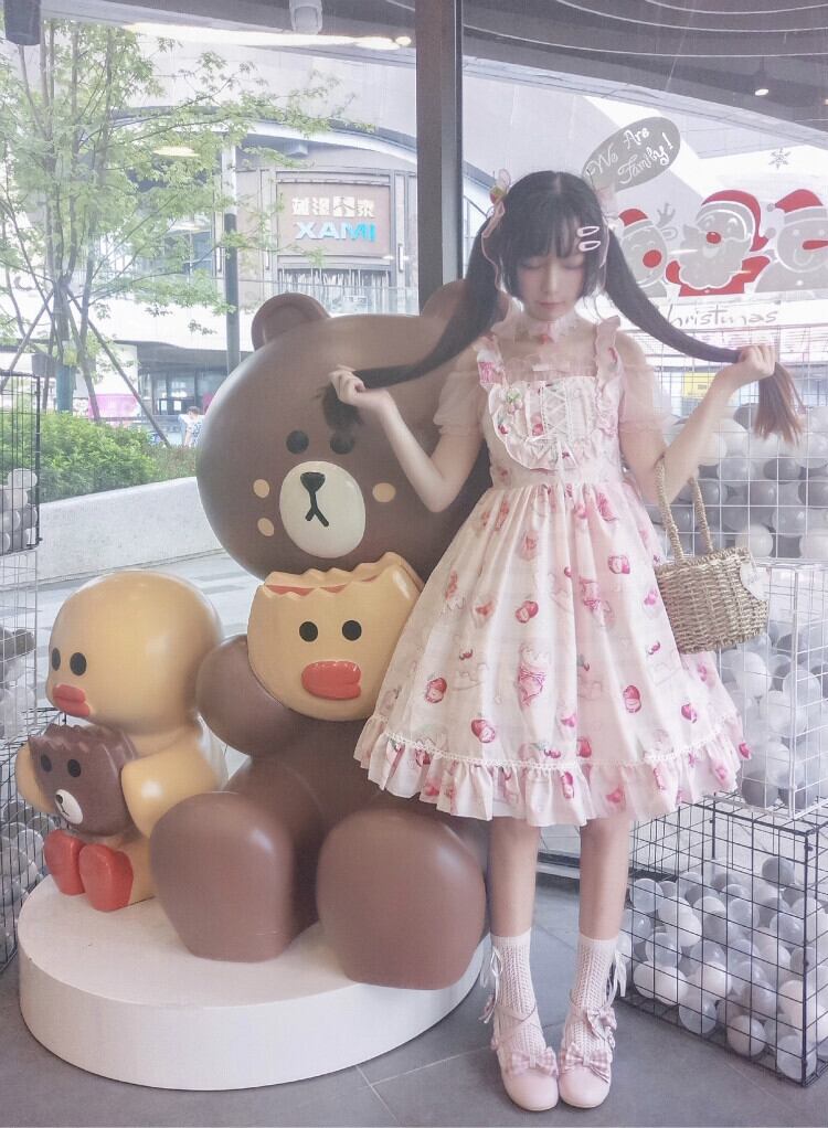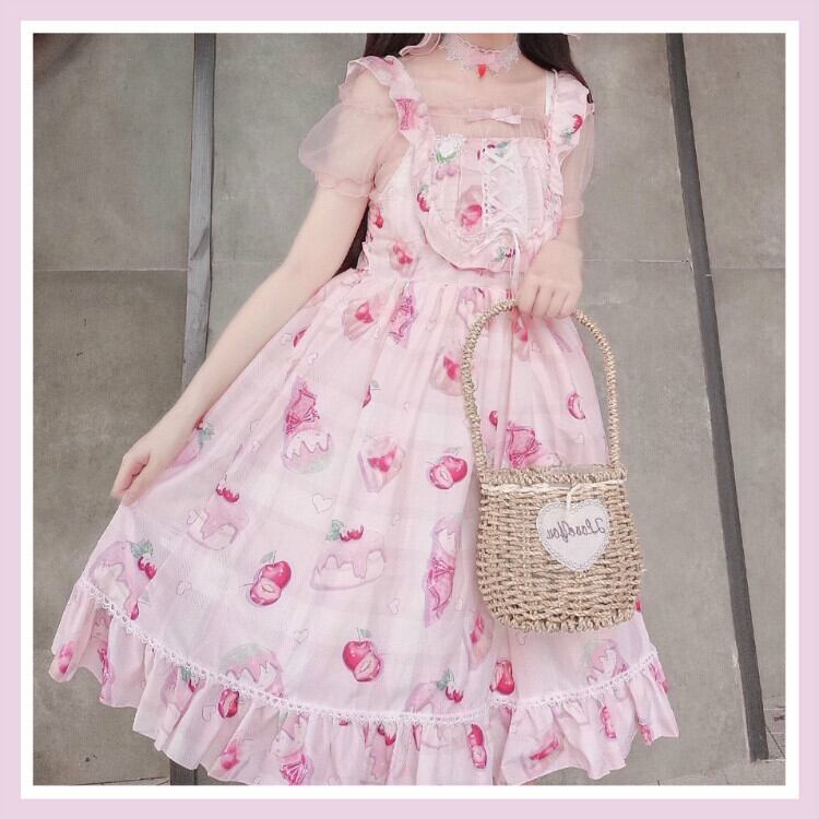 ✞ シースルーフレア袖 甘めチェリー柄ティアードワンピースドレスOP JSK スカート ✞ゴスロリ SM ミリ 甘ロリ クラロリ 和ロリ エレガント 黒ロリ 姫ロリ 華ロリ BB-BB2192503