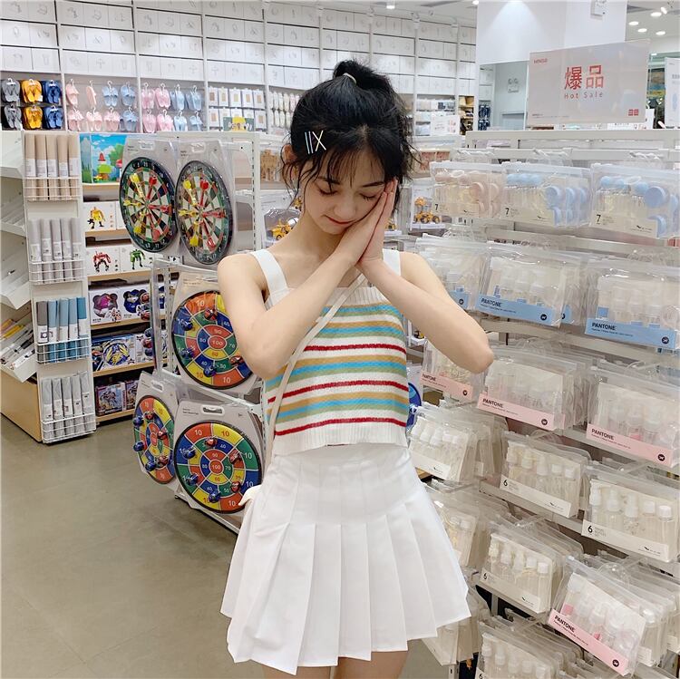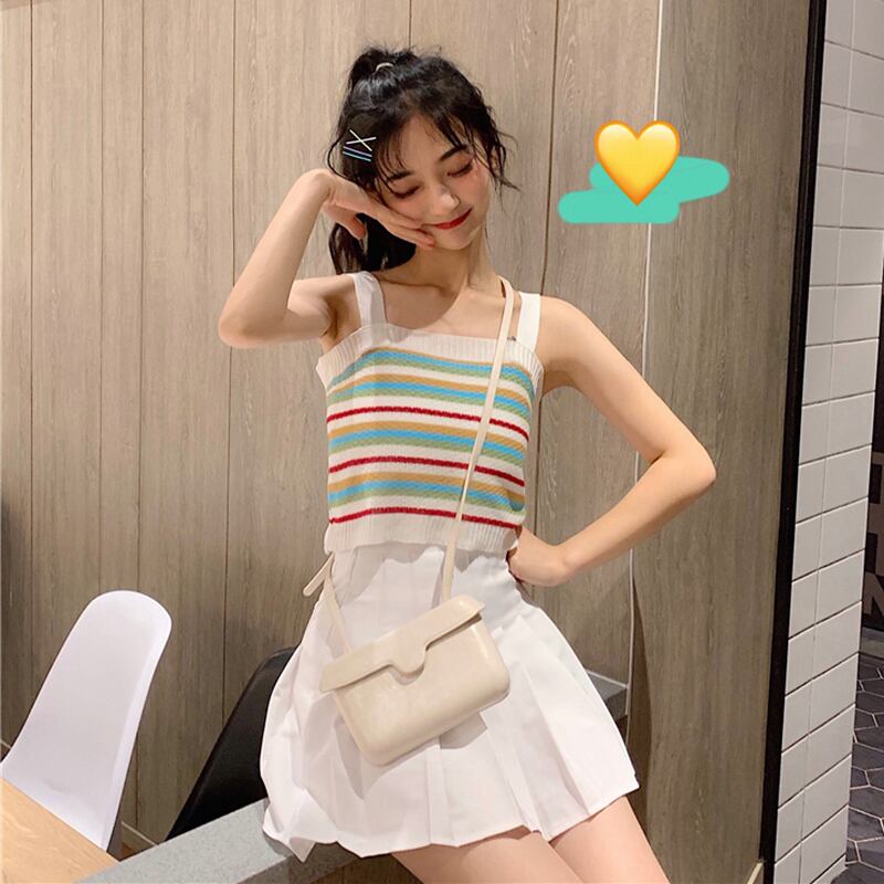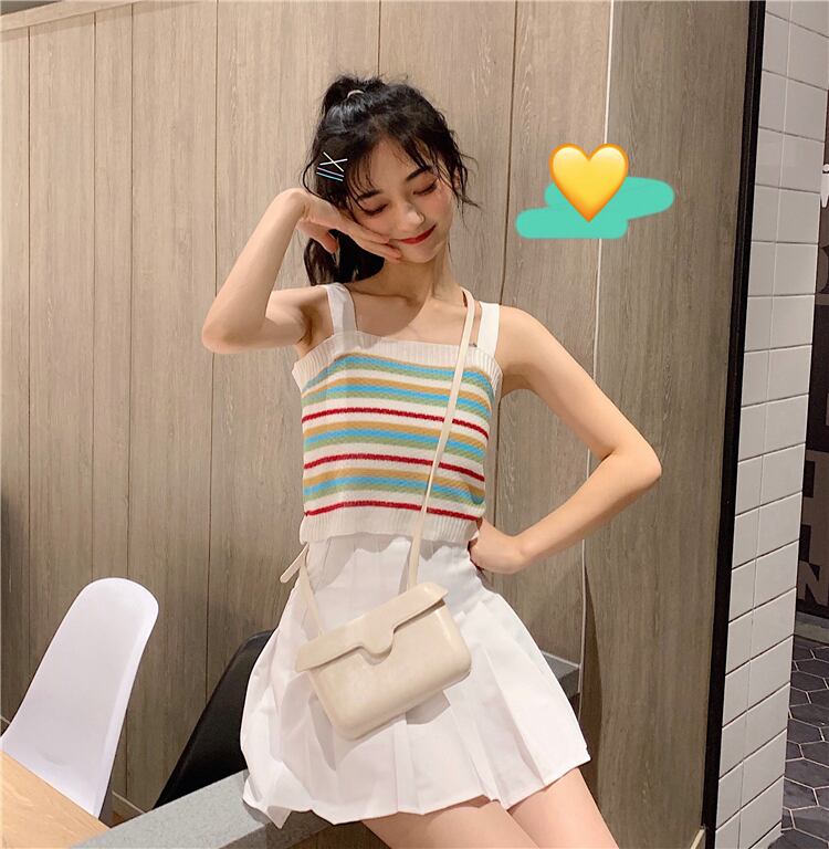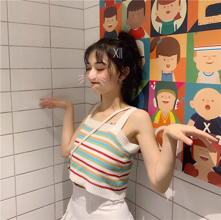✞ レインボーストライプ☆ショートニットキャミソール ✞ゴスロリ SM ミリ 甘ロリ クラロリ 和ロリ エレガント 黒ロリ 姫ロリ 華ロリ BB-BB3535022