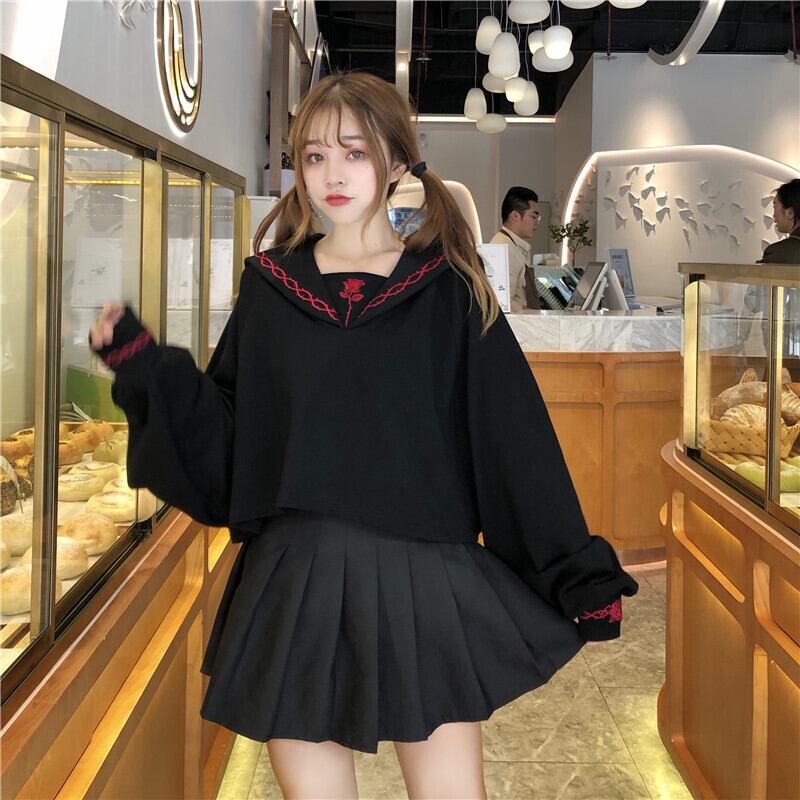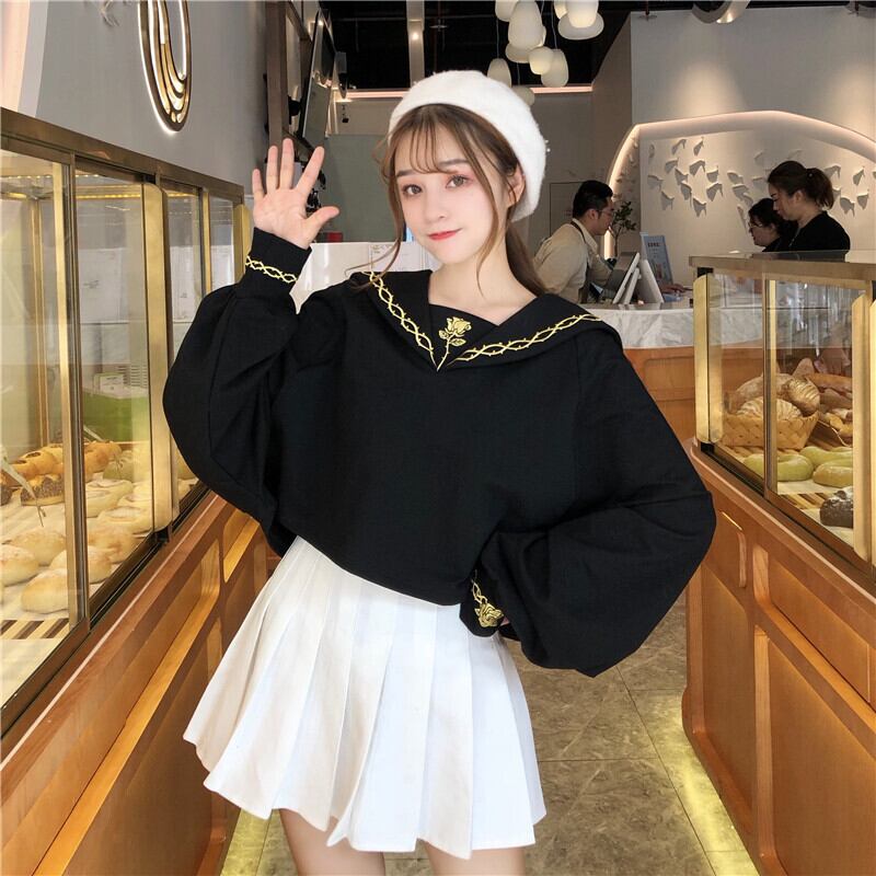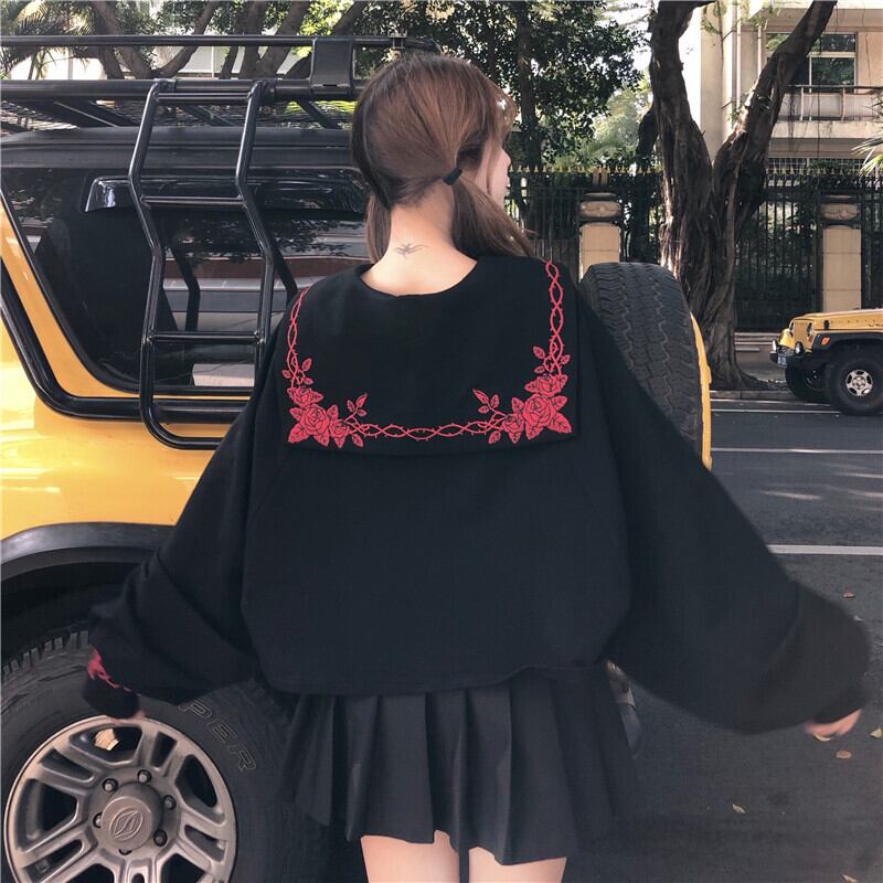✞ ダークゴールド刺繍ショート制服シャツ レッド刺繍 バルン袖 花柄 ♬カワイイ♥シャツブラウス レトロ フラワーデザイン ✞ゴスロリ SM ミリ 甘ロリ クラロリ 和ロリ エレガント 黒ロリ 姫ロリ 華ロリ BB-BB0906891
