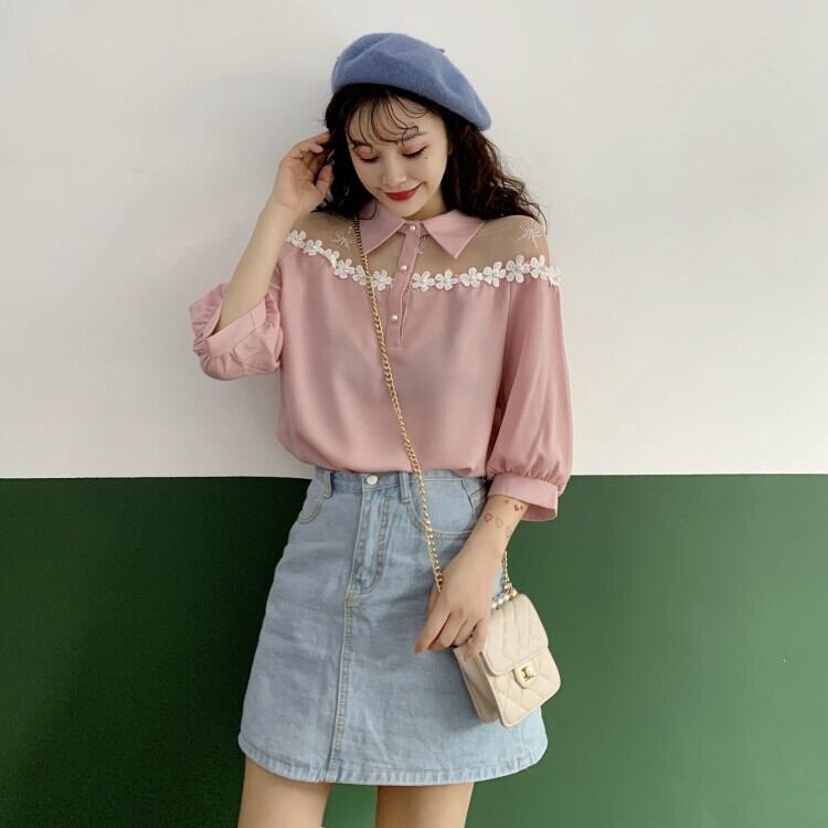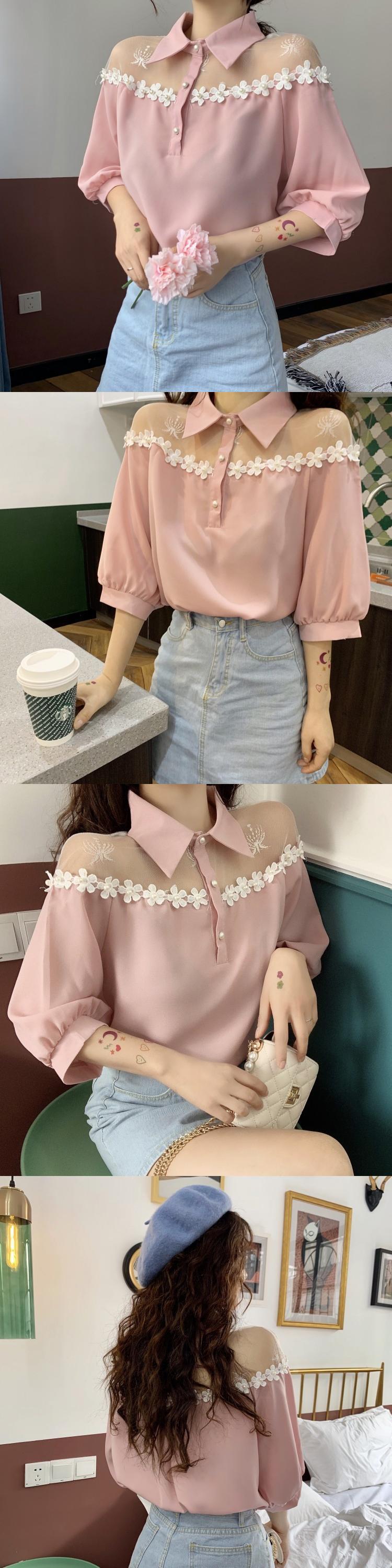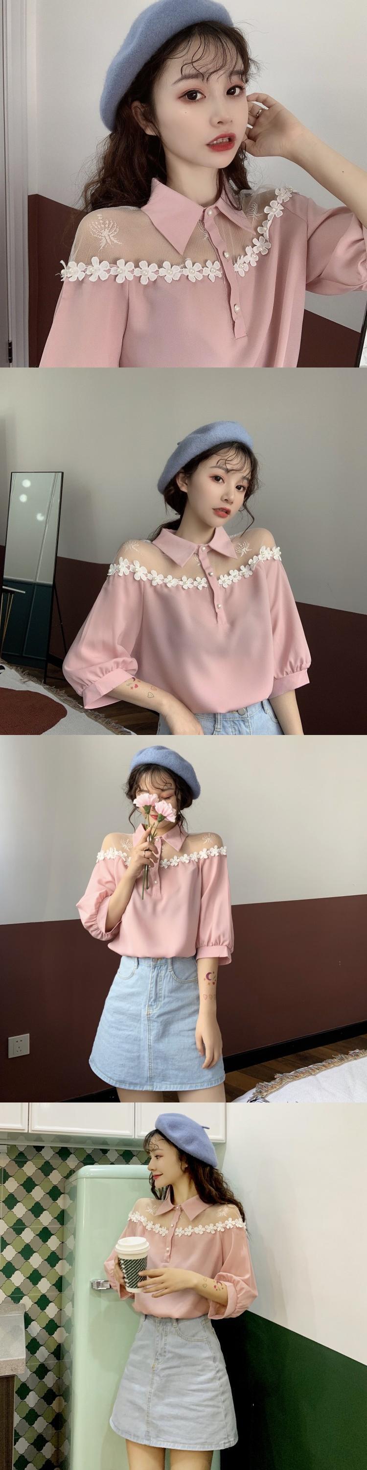 ✞ 肩メッシュシャツブラウス スリーブ ガーリー スウィート キュート カジュアル 夏物 ✞ゴスロリ SM ミリ 甘ロリ クラロリ 和ロリ エレガント 黒ロリ 姫ロリ 華ロリ BB-BB7265403