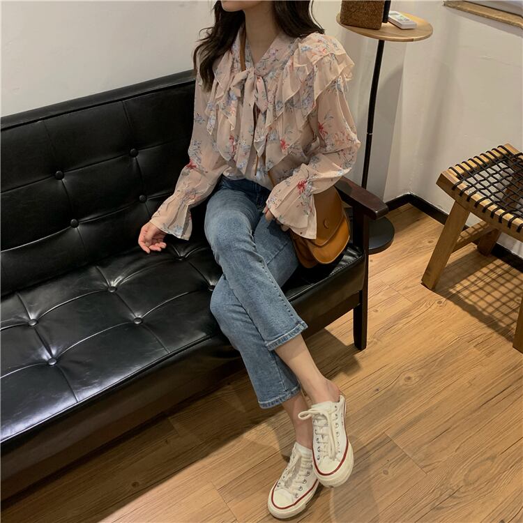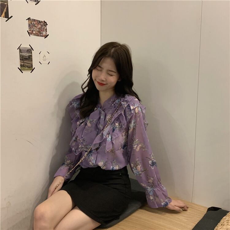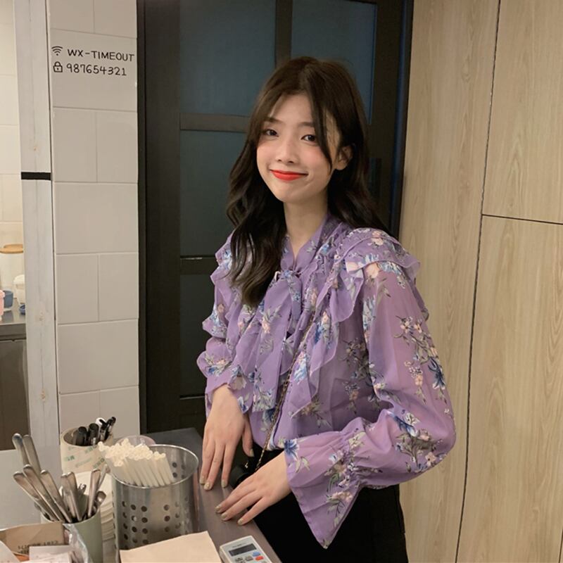 ✞ レースシフォンシャツブラウス ラウンドネック ラッフル花柄 トップス 大人ガーリー スウィート キュート カジュアル ステッチ ✞ゴスロリ SM ミリ 甘ロリ クラロリ 和ロリ エレガント 黒ロリ 姫ロリ 華ロリ BB-BB1988040