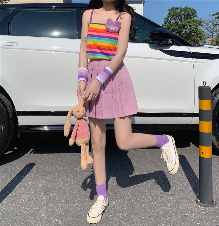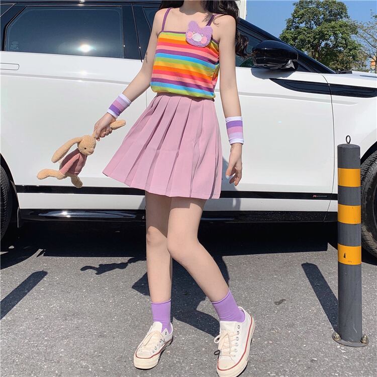 ✞ ♬カワイイパープルプリーツスカート or レインボーキャミ 大人ガーリー スウィート キュート カジュアル ✞ゴスロリ SM ミリ 甘ロリ クラロリ 和ロリ エレガント 黒ロリ 姫ロリ 華ロリ BB-BB1668816