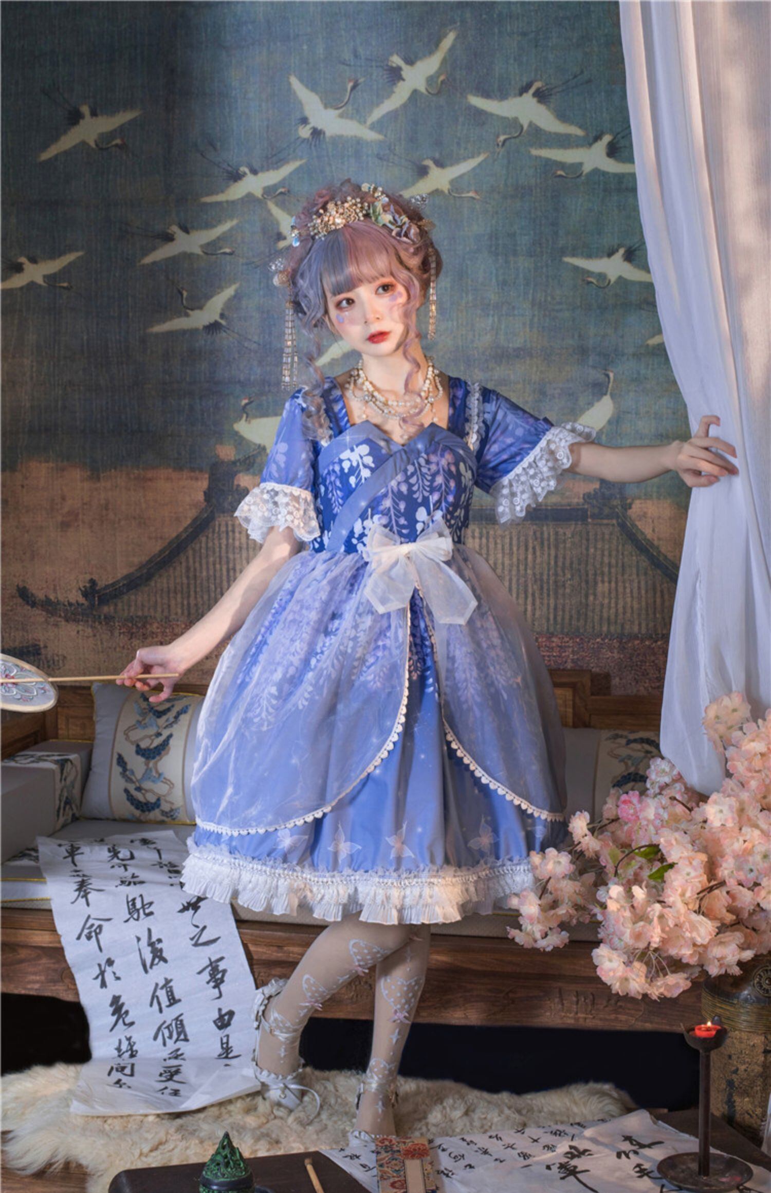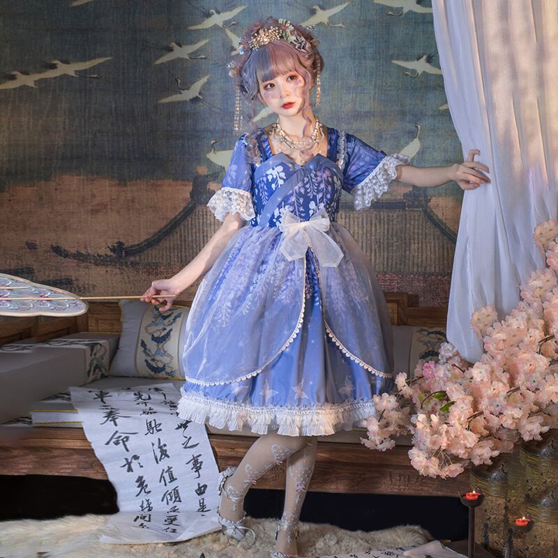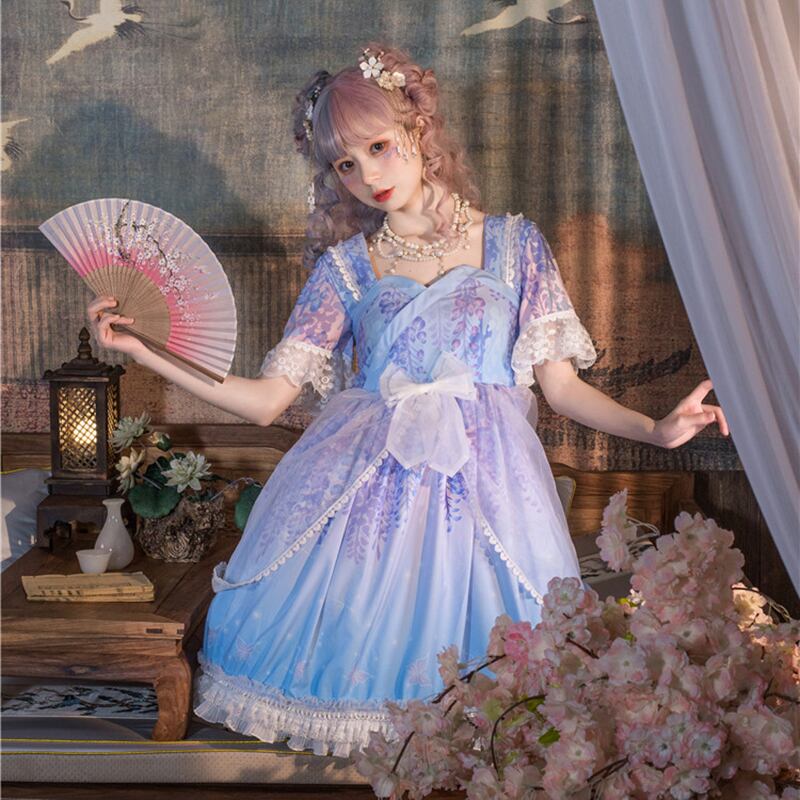 ✞ フリルスリーブメッシュリボンペプラムワンピース ショート ハーフスリーブ 大人ガーリー スウィート キュート カジュアル スクウェア ✞ゴスロリ SM ミリ 甘ロリ クラロリ 和ロリ エレガント 黒ロリ 姫ロリ 華ロリ BB-BB7024045