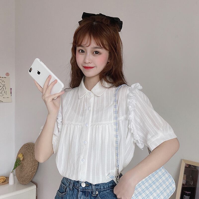 ✞ ホワイトシャツブラウスレース半袖スリーブ ショート ハーフスリーブ 大人ガーリー スウィート キュート カジュアル ✞ゴスロリ SM ミリ 甘ロリ クラロリ 和ロリ エレガント 黒ロリ 姫ロリ 華ロリ BB-BB0715566