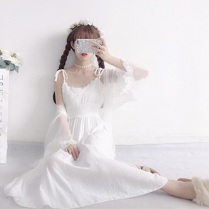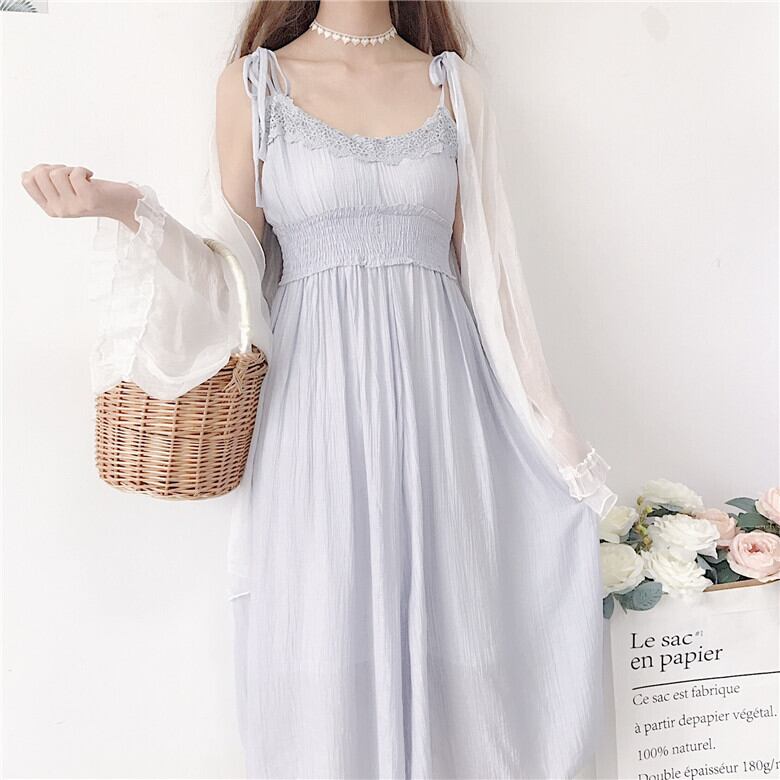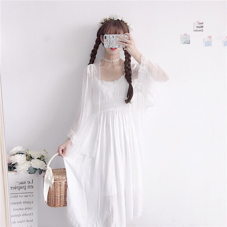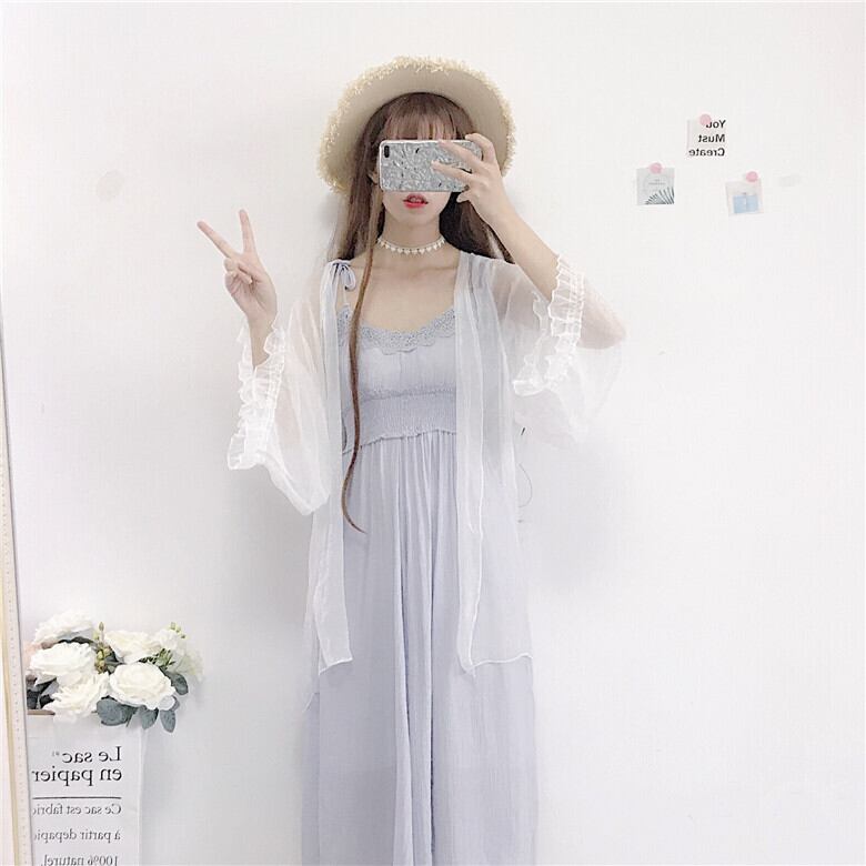 ✞デコルテきれいなレースキャミシフォンワンピースドレス or シフォンチュールカーディガン ☆大人ガーリー スウィート キュート カジュアル 夏物 レースアップ ✞ゴスロリ SM ミリ 甘ロリ クラロリ 和ロリ エレガント 黒ロリ 姫ロリ 華ロリ BB-BB8165130