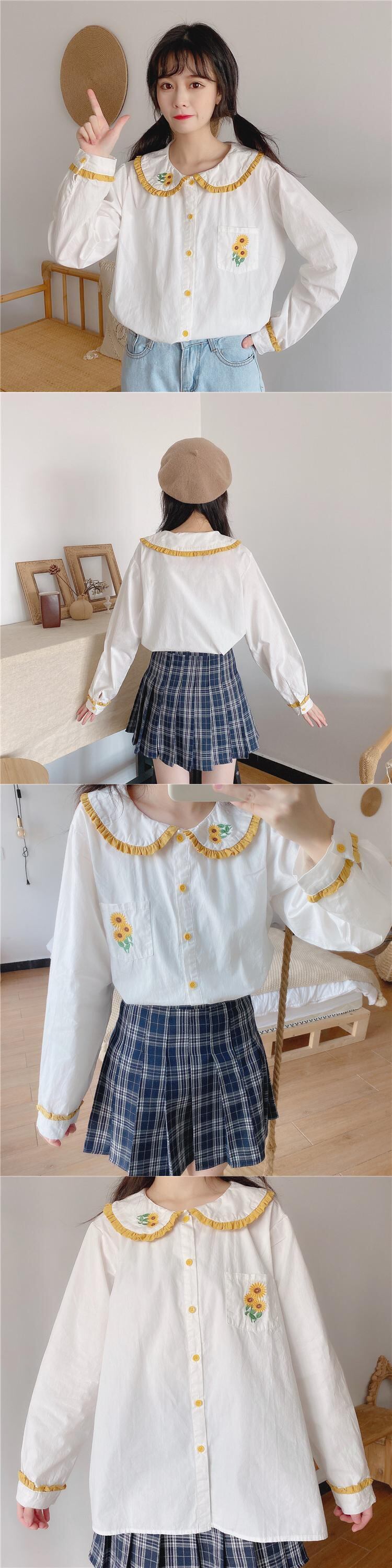 ✞ 丸襟シャツブラウス長袖スリーブトップス ロング 大人ガーリー スウィート キュート カジュアル ✞ゴスロリ SM ミリ 甘ロリ クラロリ 和ロリ エレガント 黒ロリ 姫ロリ 華ロリ BB-BB6332544