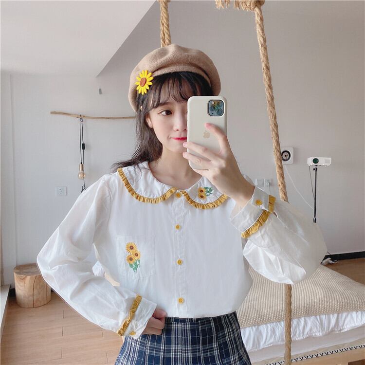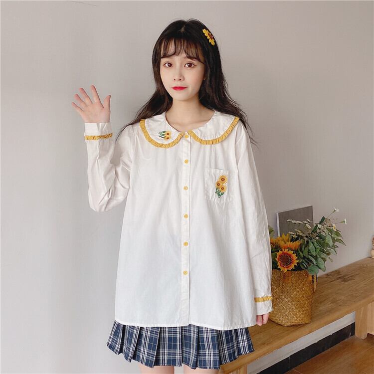 ✞ レース刺繍 シャツブラウス ロング 大人ガーリー スウィート キュート カジュアル フラワーデザイン ✞ゴスロリ SM ミリ 甘ロリ クラロリ 和ロリ エレガント 黒ロリ 姫ロリ 華ロリ BB-BB2453558