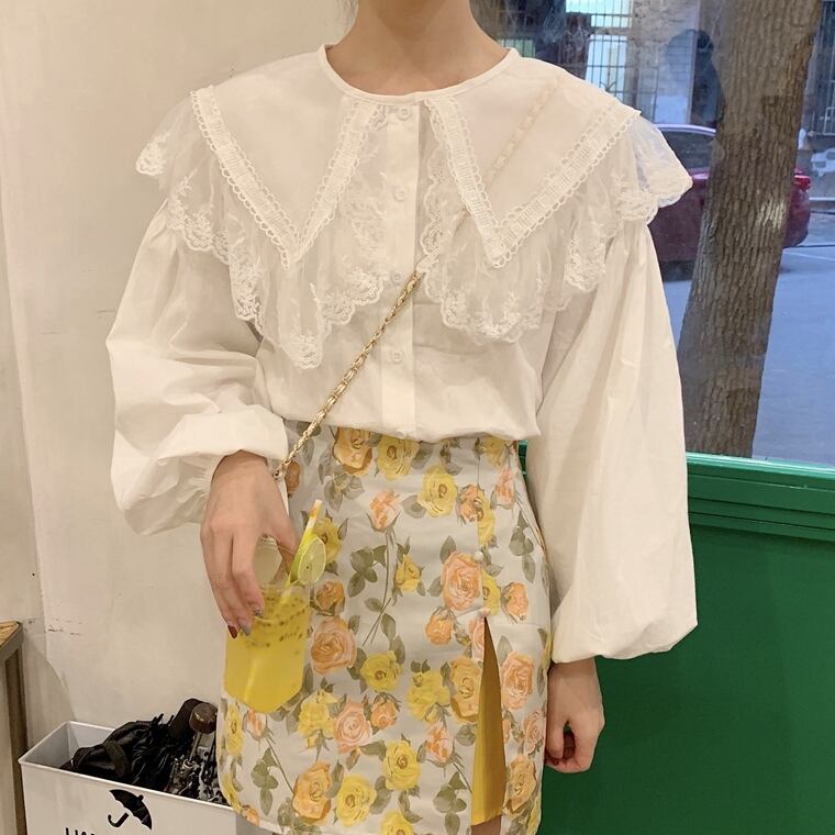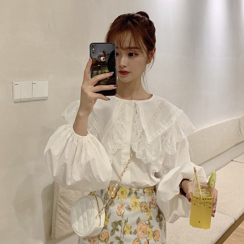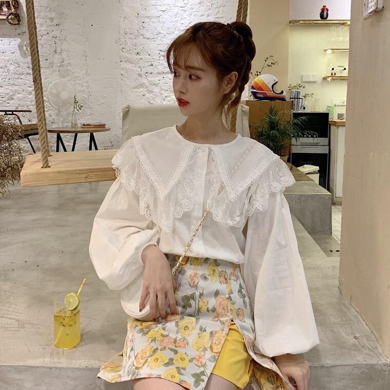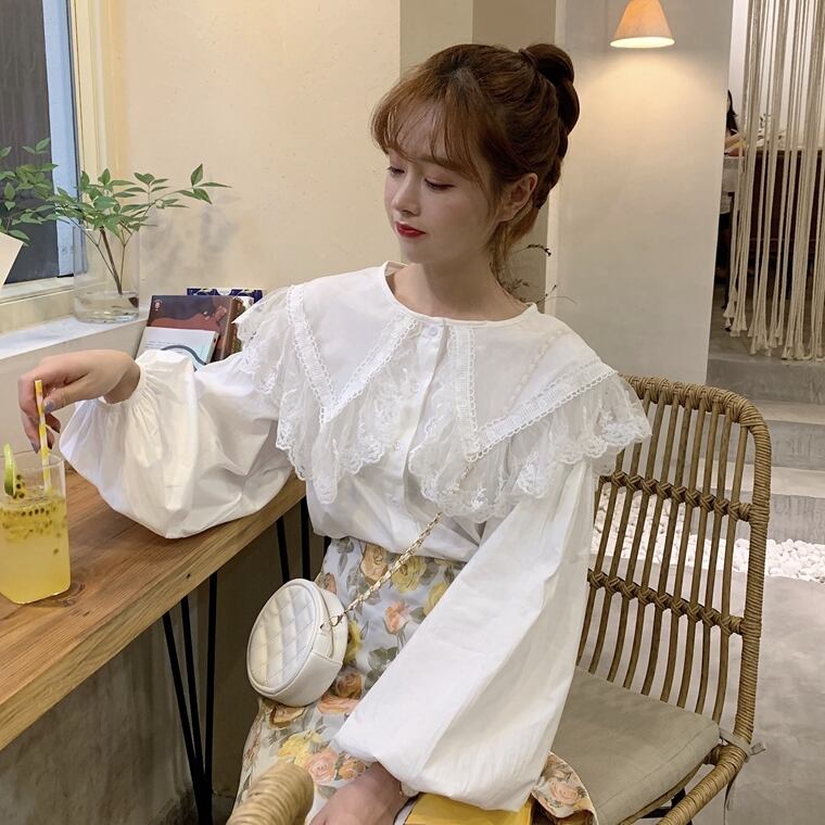 ✞ おおきめ襟メッシュスリーブカラーシャツブラウストップス 大人ガーリー スウィート キュート カジュアル ✞ゴスロリ SM ミリ 甘ロリ クラロリ 和ロリ エレガント 黒ロリ 姫ロリ 華ロリ BB-BB5143145