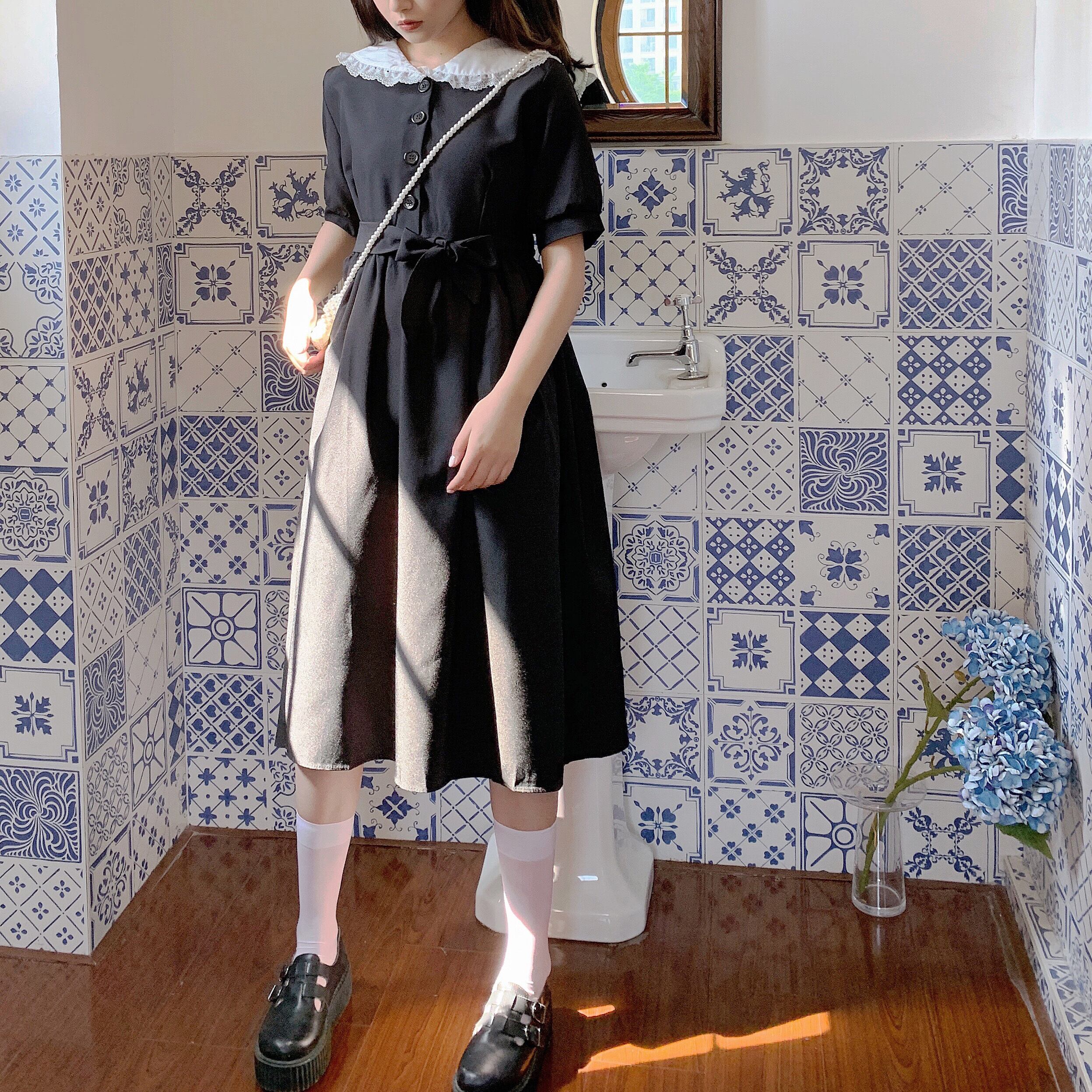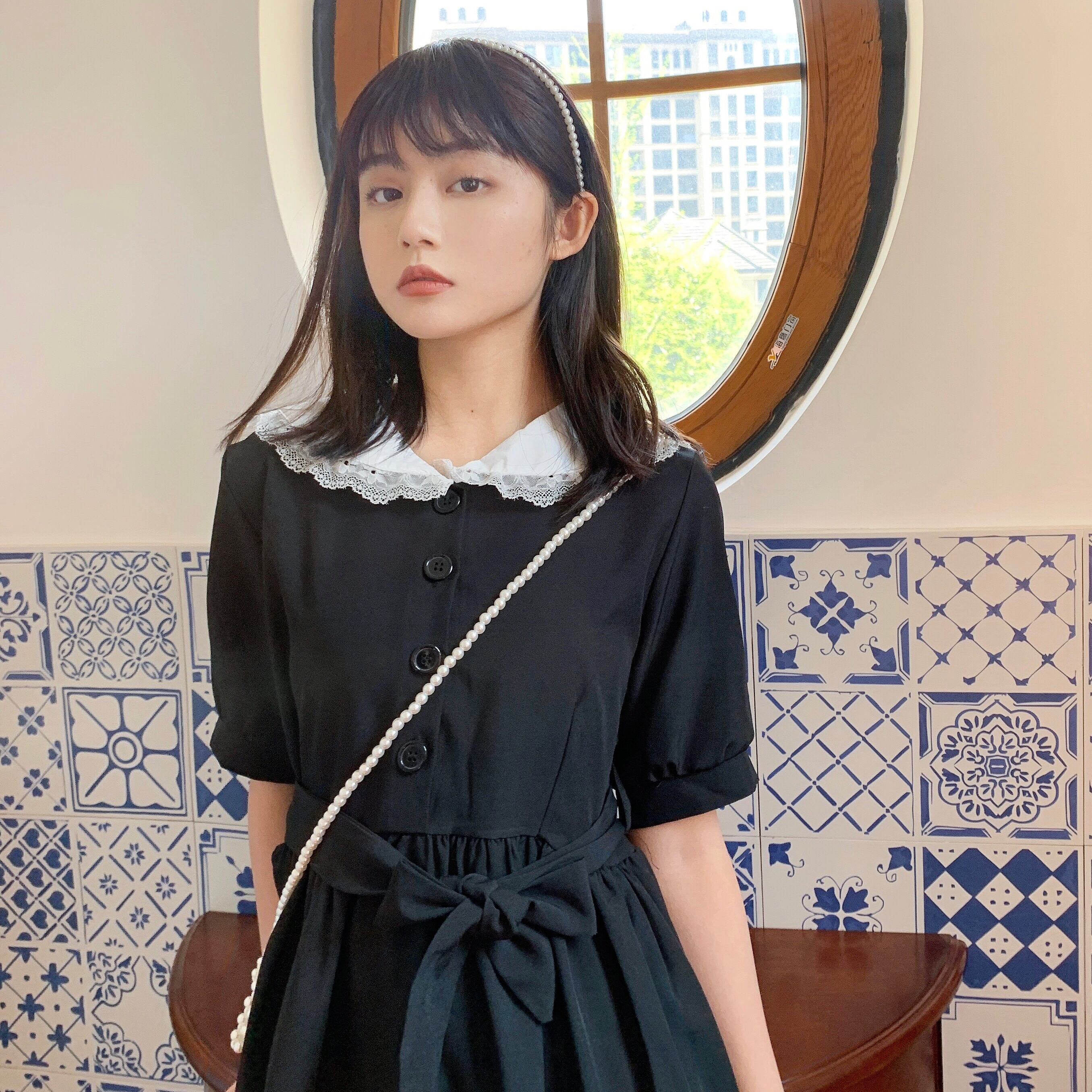 ✞ ダーク半袖スリーブ丸襟ワンピースOP ガーリー スウィート キュート カジュアル ✞ゴスロリ SM ミリ 甘ロリ クラロリ 和ロリ エレガント 黒ロリ 姫ロリ 華ロリ BB-BB8476987