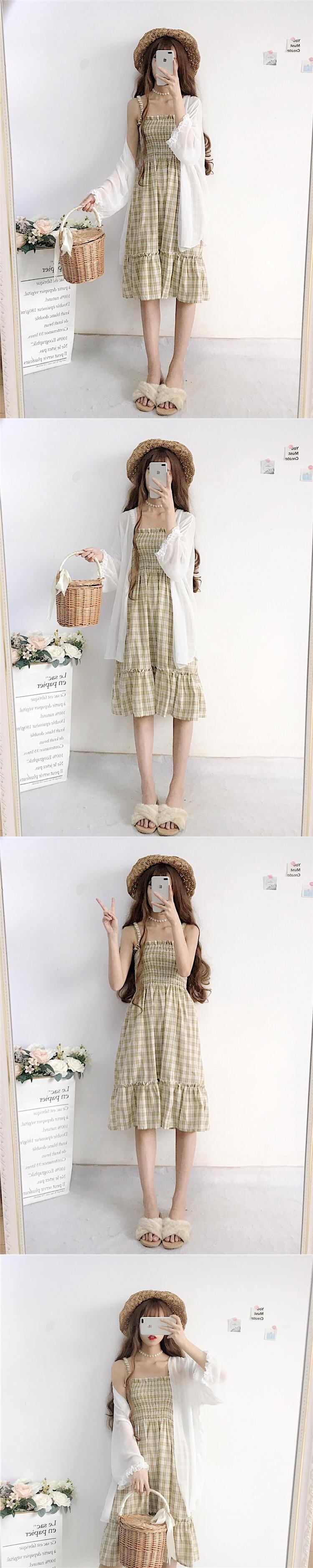 色:ブルーチェック柄スカートワンピース,イエローチェック柄ワンピース,日焼け止め服