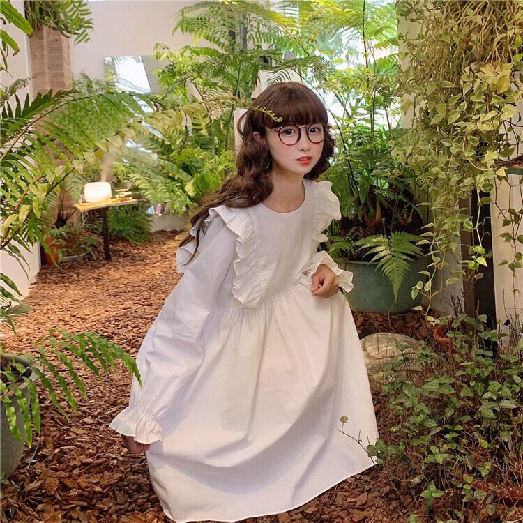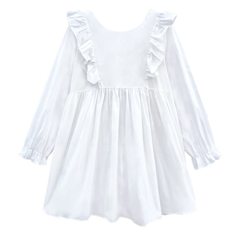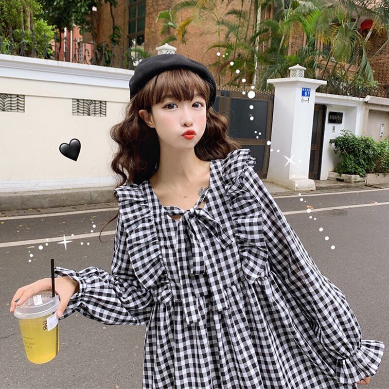 ✞ 清楚すぎるリボンレースフリル長袖スリーブチェック柄ワンピースドレスOP ホワイト シャツ ブラウス ワンピ ロング 大人ガーリー スウィート キュート カジュアル ✞ゴスロリ SM ミリ 甘ロリ クラロリ 和ロリ エレガント 黒ロリ 姫ロリ 華ロリ BB-BB0164333