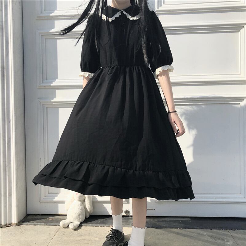 ✞ ロングスカート レース半袖スリーブウエストすっきり☆着痩せソリッド カラー ショート ハーフスリーブ 大人ガーリー スウィート キュート カジュアル ソリッドカラー ステッチ ✞ゴスロリ SM ミリ 甘ロリ クラロリ 和ロリ エレガント 黒ロリ 姫ロリ 華ロリ BB-BB3908912