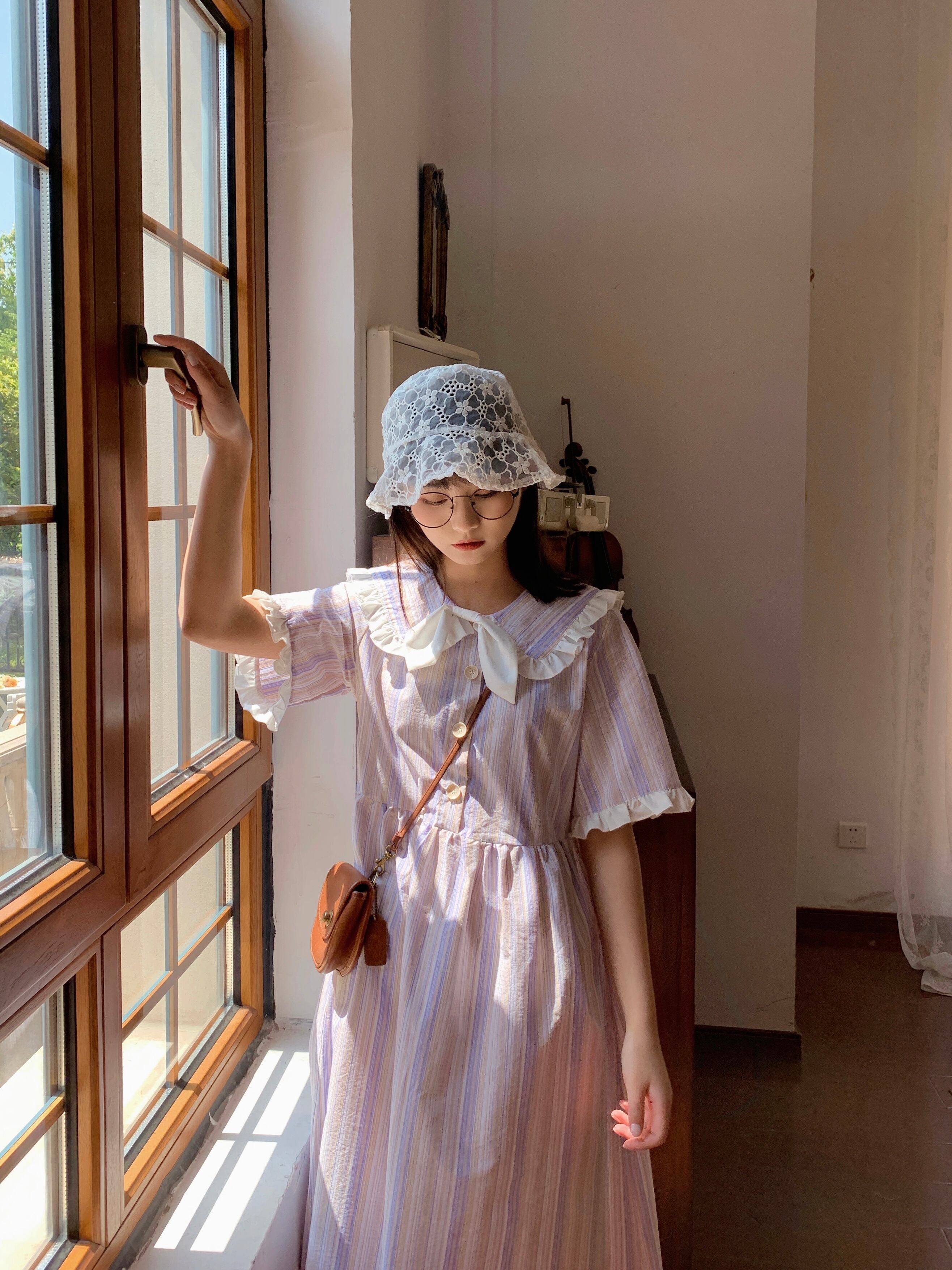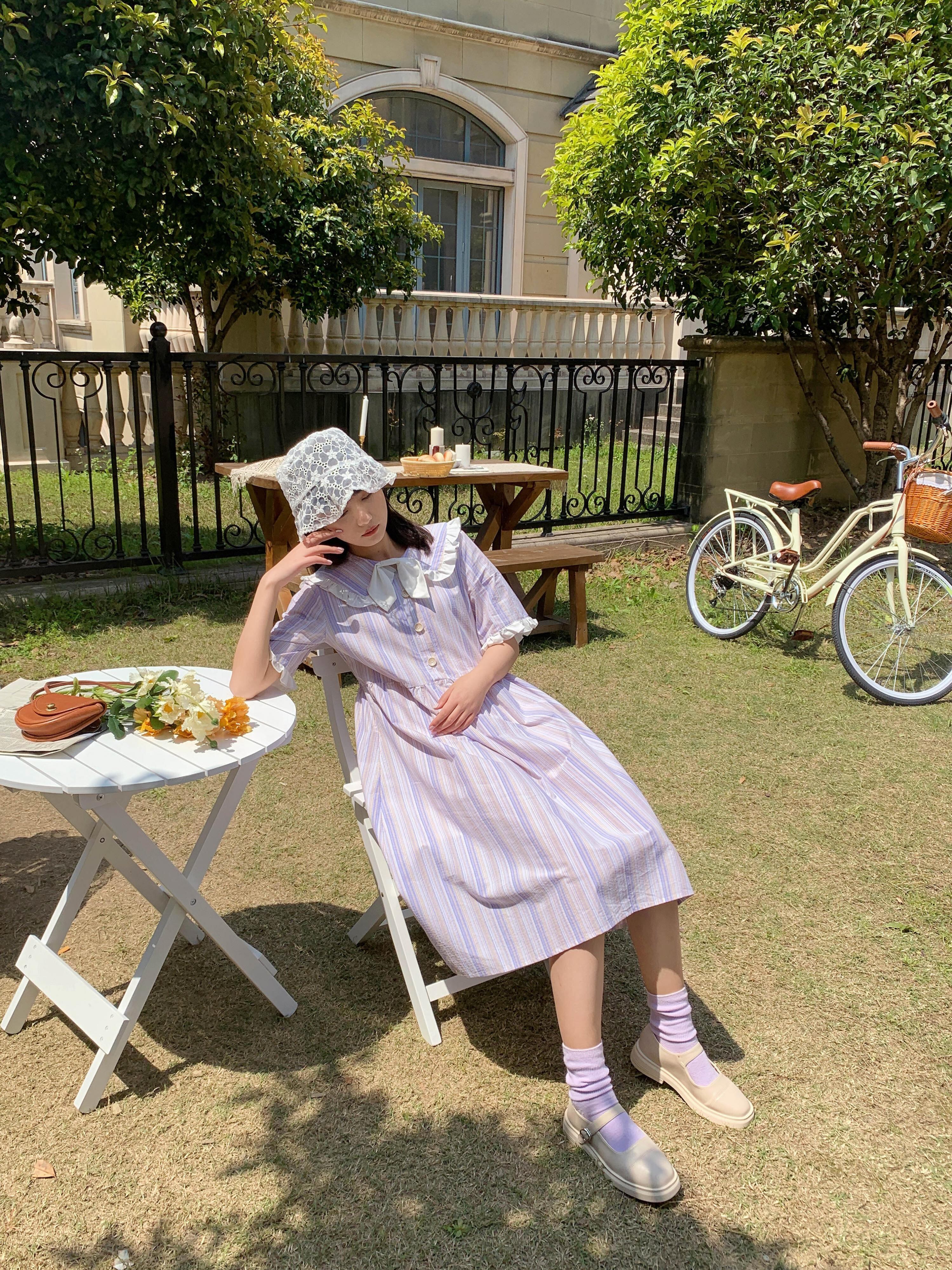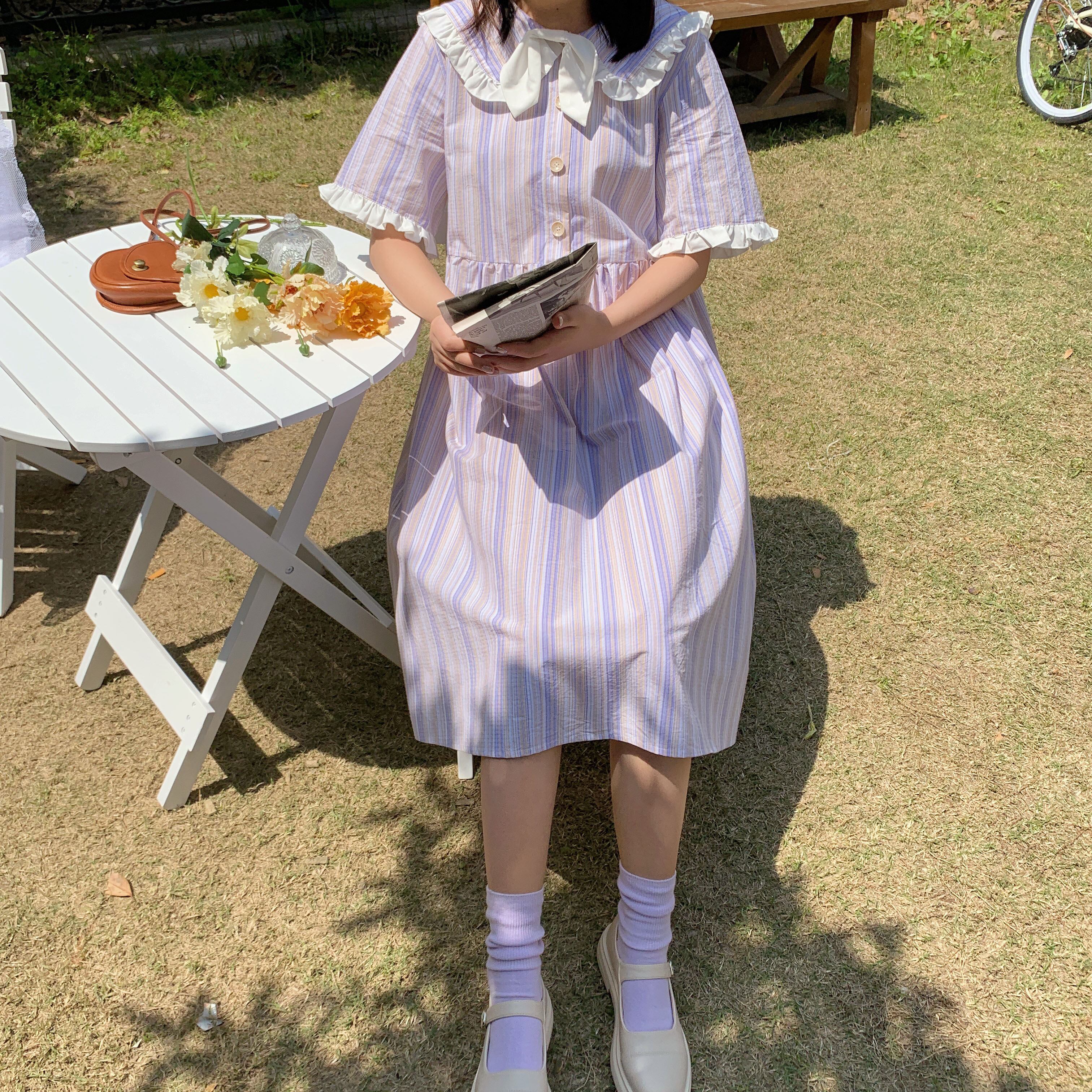 ✞ きれいめ☆ネイビーカラーストライプ半袖スリーブ ショート ハーフスリーブ 大人ガーリー スウィート キュート カジュアル ✞ゴスロリ SM ミリ 甘ロリ クラロリ 和ロリ エレガント 黒ロリ 姫ロリ 華ロリ BB-BB4622018