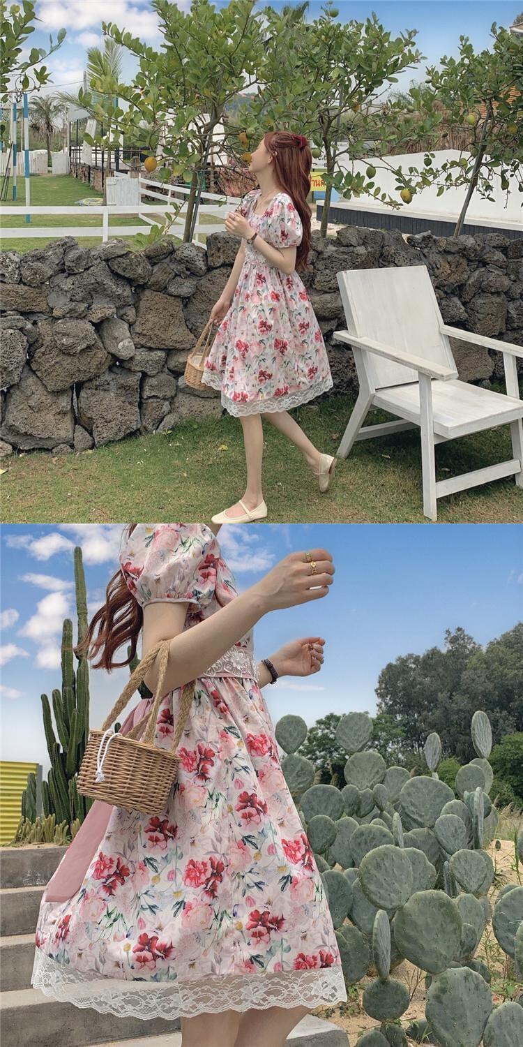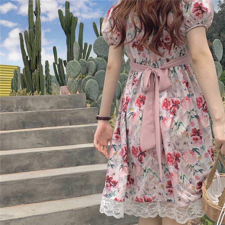 ✞ 花柄プリントレース♬カワイイ♥ 大人ガーリー スウィート キュート カジュアル フラワーデザイン スクウェア ステッチ ✞ゴスロリ SM ミリ 甘ロリ クラロリ 和ロリ エレガント 黒ロリ 姫ロリ 華ロリ BB-BB9483346