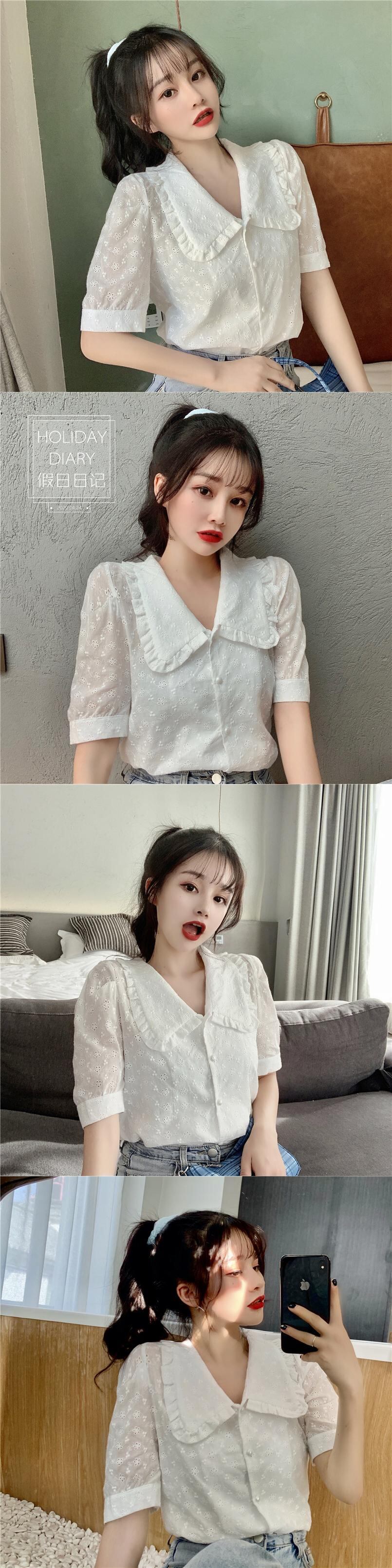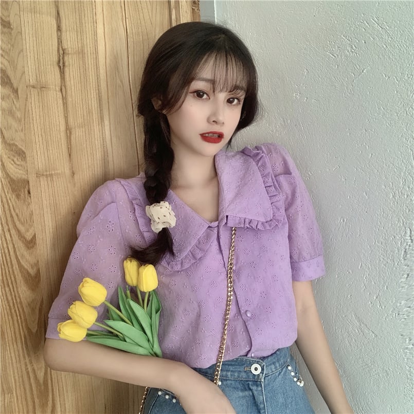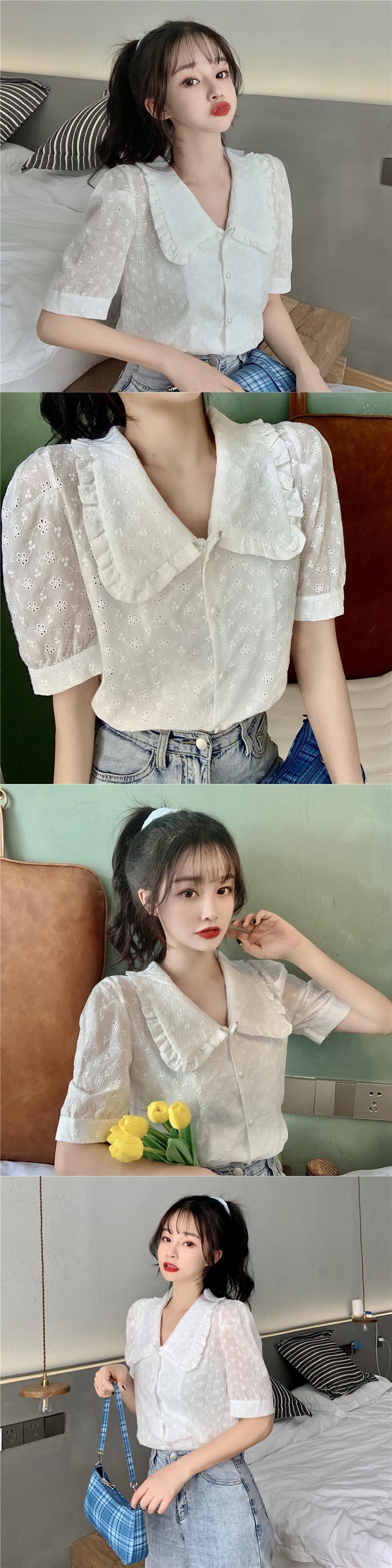 ✞ ソリッド カラーシャツブラウススタンダードレース花柄トップス レトロ 大人ガーリー スウィート キュート カジュアル ソリッドカラー フラワーデザイン ✞ゴスロリ SM ミリ 甘ロリ クラロリ 和ロリ エレガント 黒ロリ 姫ロリ 華ロリ BB-BB2540250