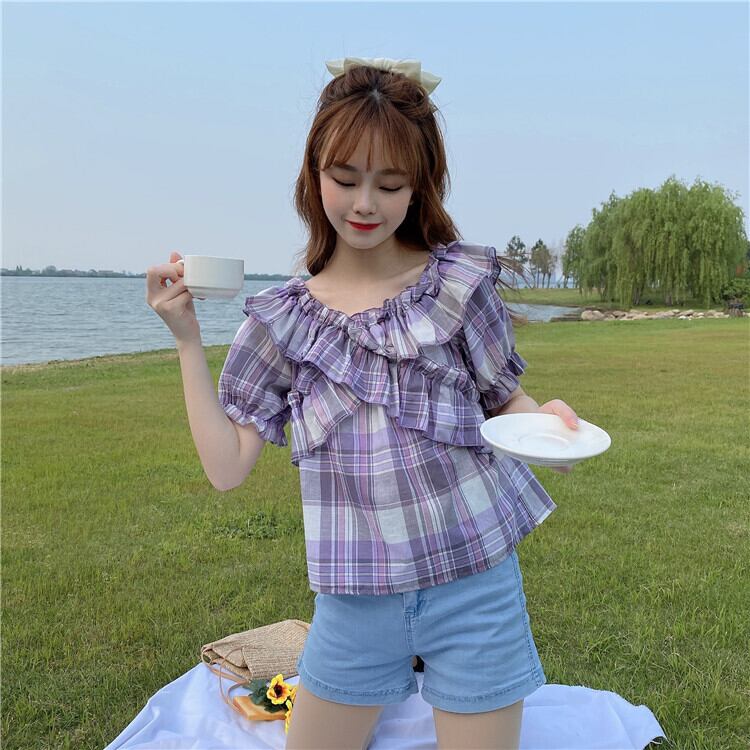 ✞ トップス スタンダードチェック柄ラッフルシャツブラウス レトロ 大人ガーリー スウィート キュート カジュアル ✞ゴスロリ SM ミリ 甘ロリ クラロリ 和ロリ エレガント 黒ロリ 姫ロリ 華ロリ BB-BB0076939