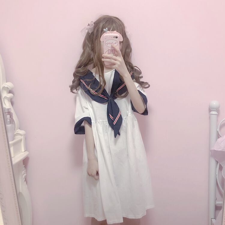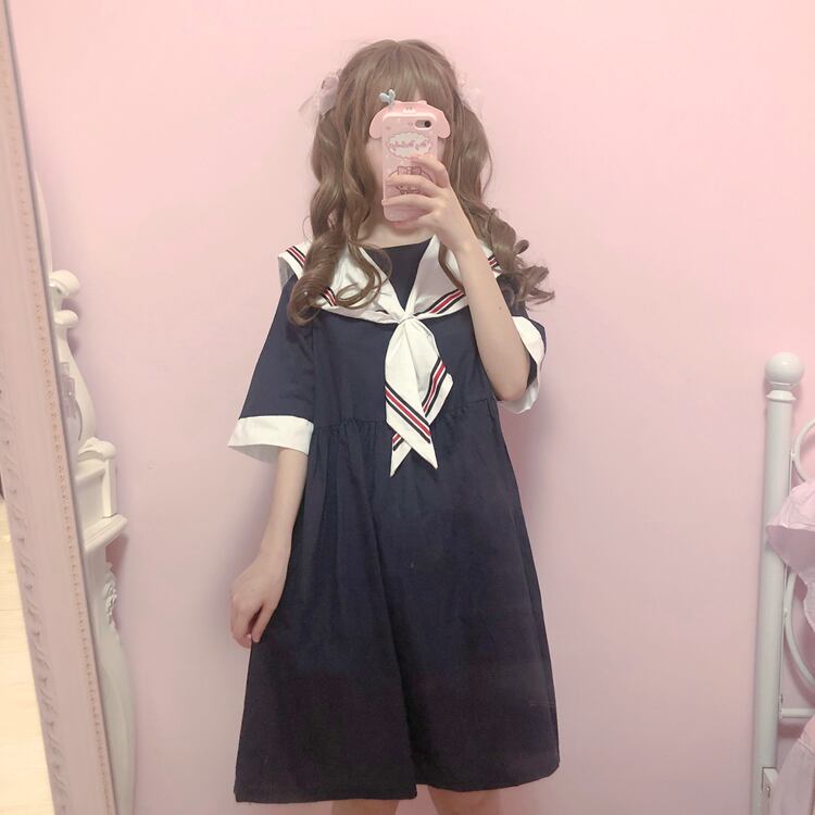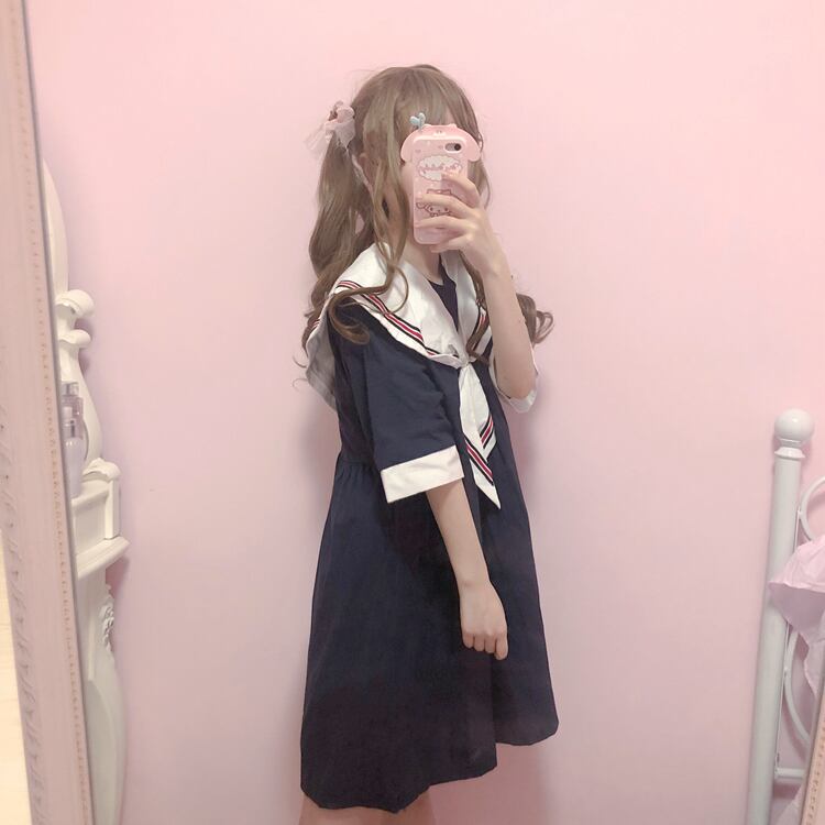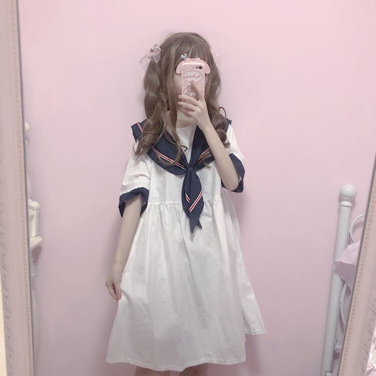 ✞ 制服風 りぼんがキュート♥ワンピースドレスOP ホワイト☆ネイビー ✞ゴスロリ SM ミリ 甘ロリ クラロリ 和ロリ エレガント 黒ロリ 姫ロリ 華ロリ BB-BB5214510