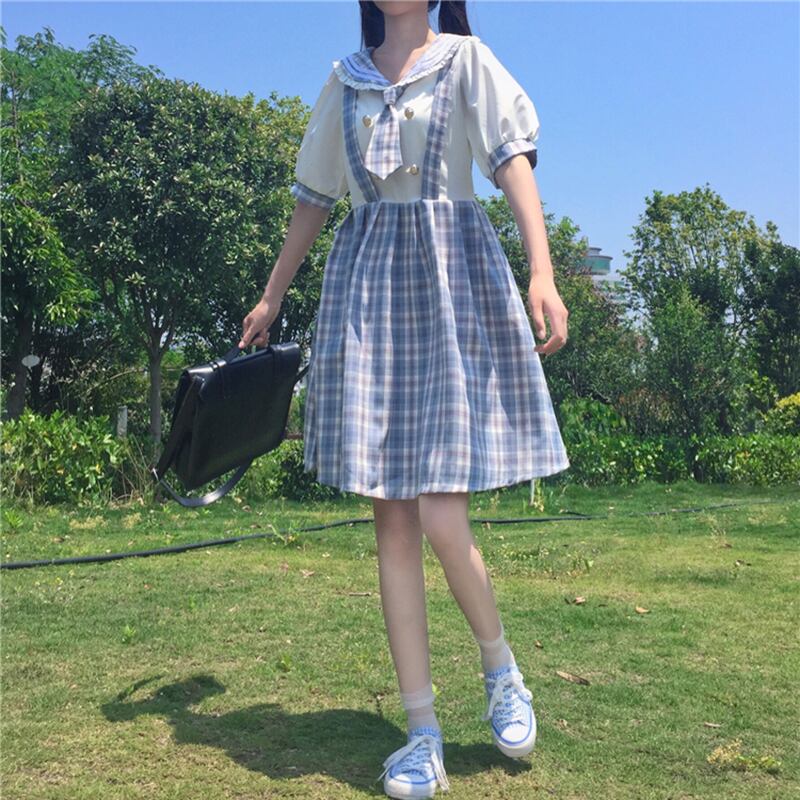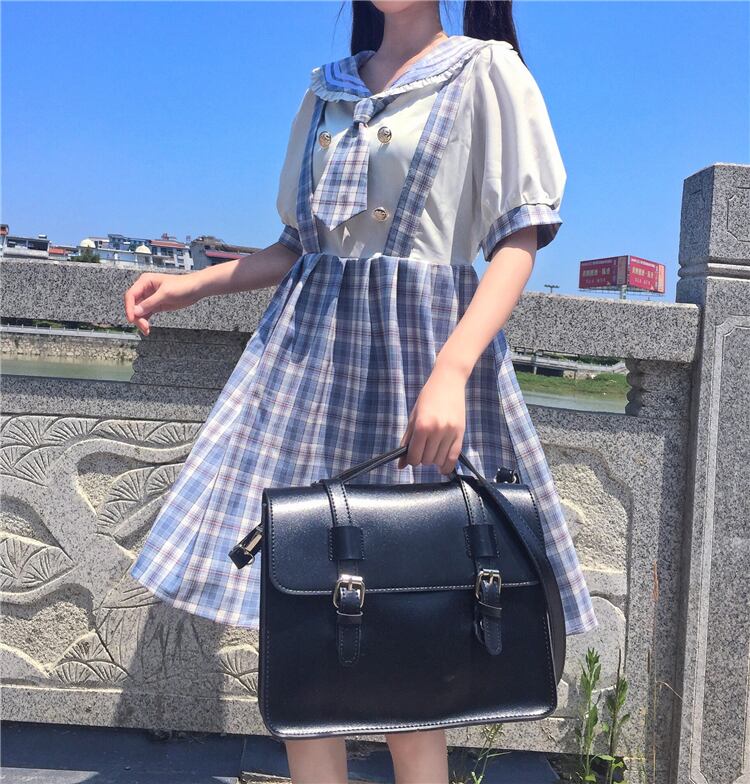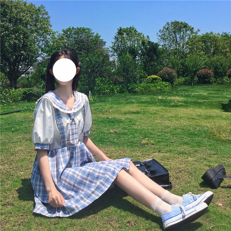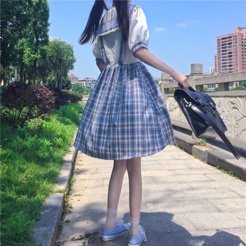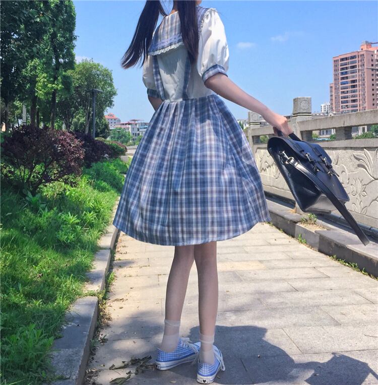 ✞ チェックきれいめ☆制服っぽいシフォンチェックワンピースOP スリーブ ✞ゴスロリ SM ミリ 甘ロリ クラロリ 和ロリ エレガント 黒ロリ 姫ロリ 華ロリ BB-BB7424674