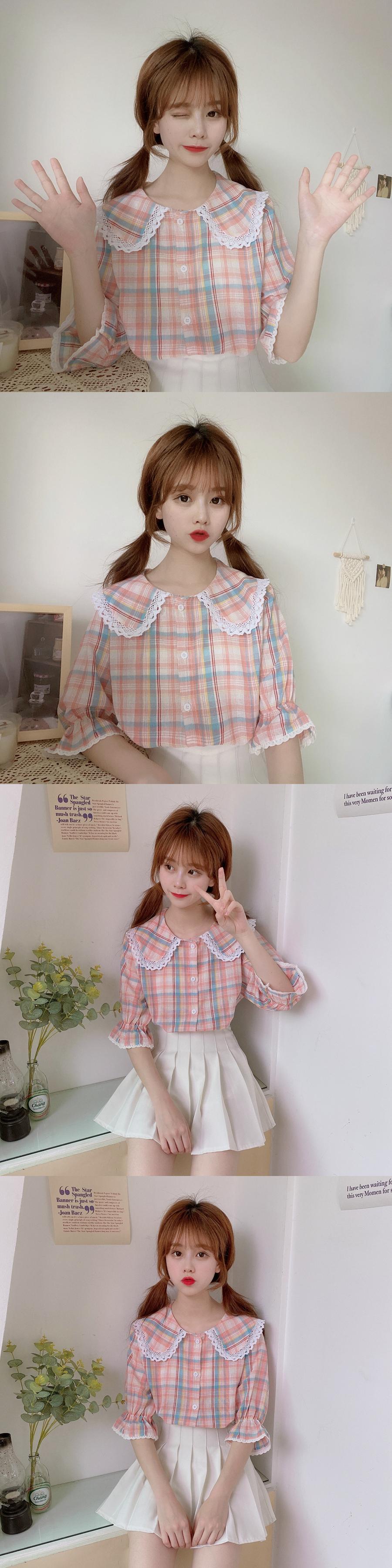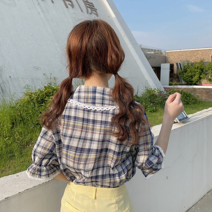 ✞ チェック柄シャツブラウスきれいめ☆レーストップス 大人ガーリー スウィート キュート カジュアル ✞ゴスロリ SM ミリ 甘ロリ クラロリ 和ロリ エレガント 黒ロリ 姫ロリ 華ロリ BB-BB4207557