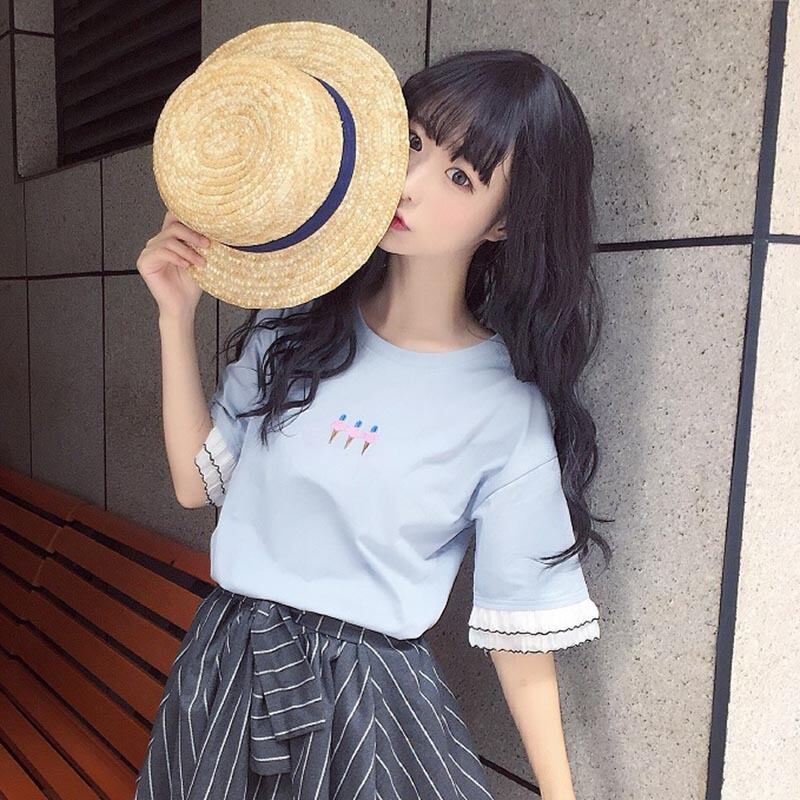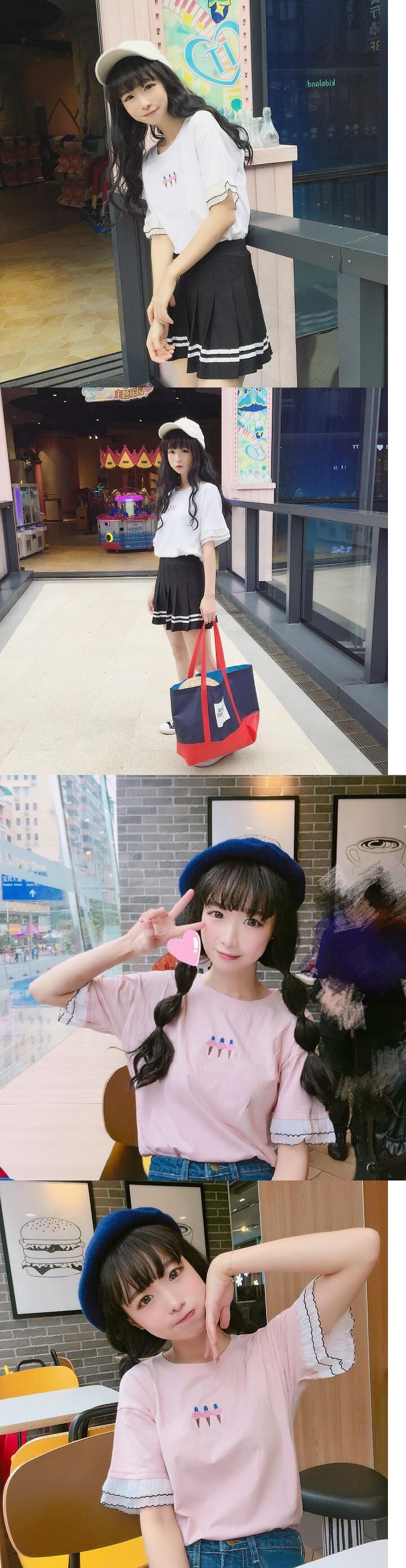✞ 刺繍レースTシャツ トップス 大人ガーリー スウィート キュート カジュアル ✞ゴスロリ SM ミリ 甘ロリ クラロリ 和ロリ エレガント 黒ロリ 姫ロリ 華ロリ BB-BB0190347