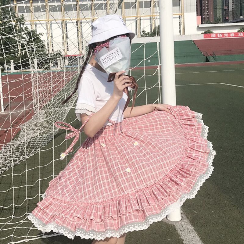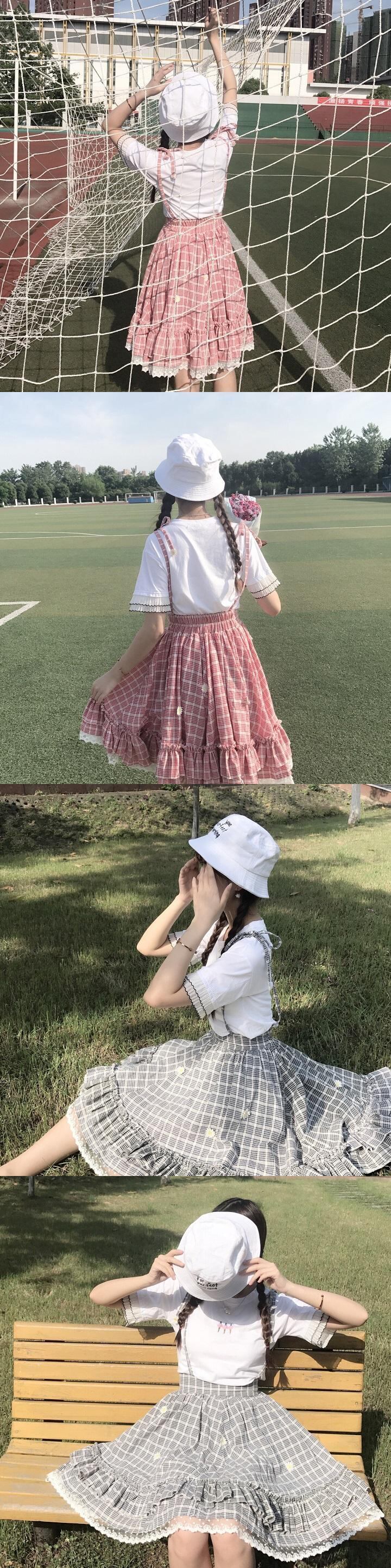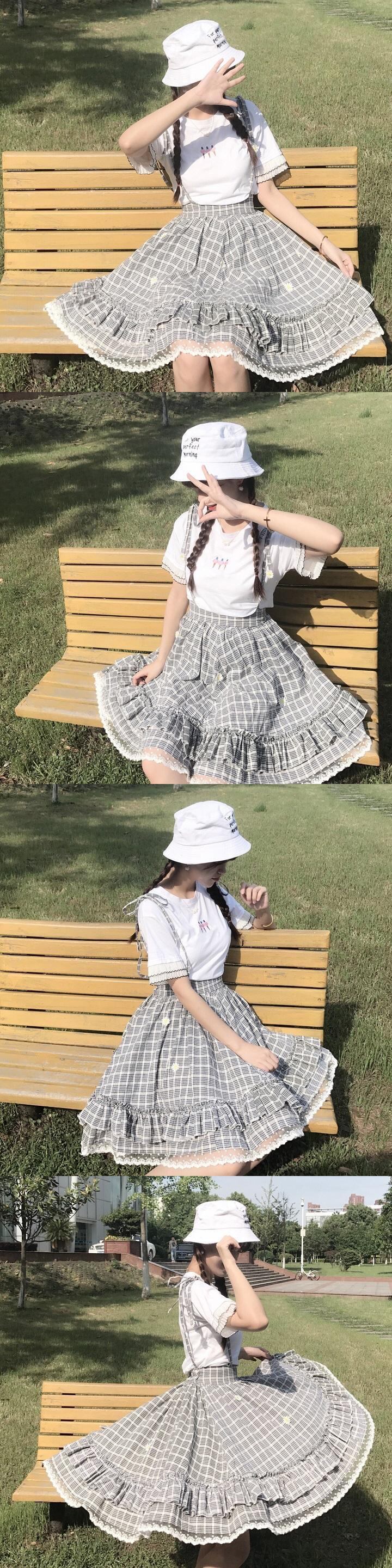 ✞ チェック柄ウエストすっきり☆着痩せスカート サマー ロング 大人ガーリー スウィート キュート カジュアル 夏物 長めのストラップ ✞ゴスロリ SM ミリ 甘ロリ クラロリ 和ロリ エレガント 黒ロリ 姫ロリ 華ロリ BB-BB4972782