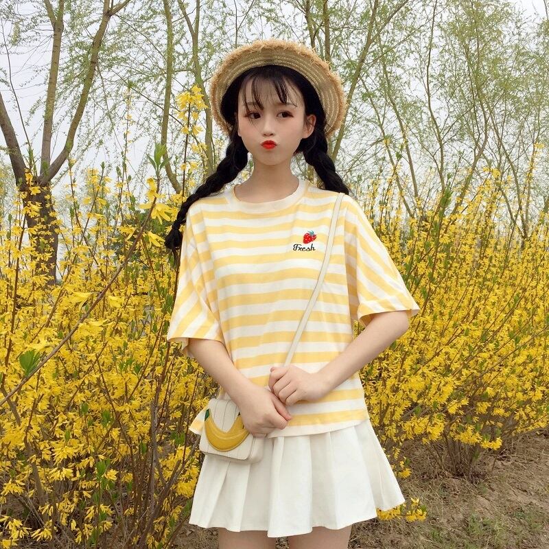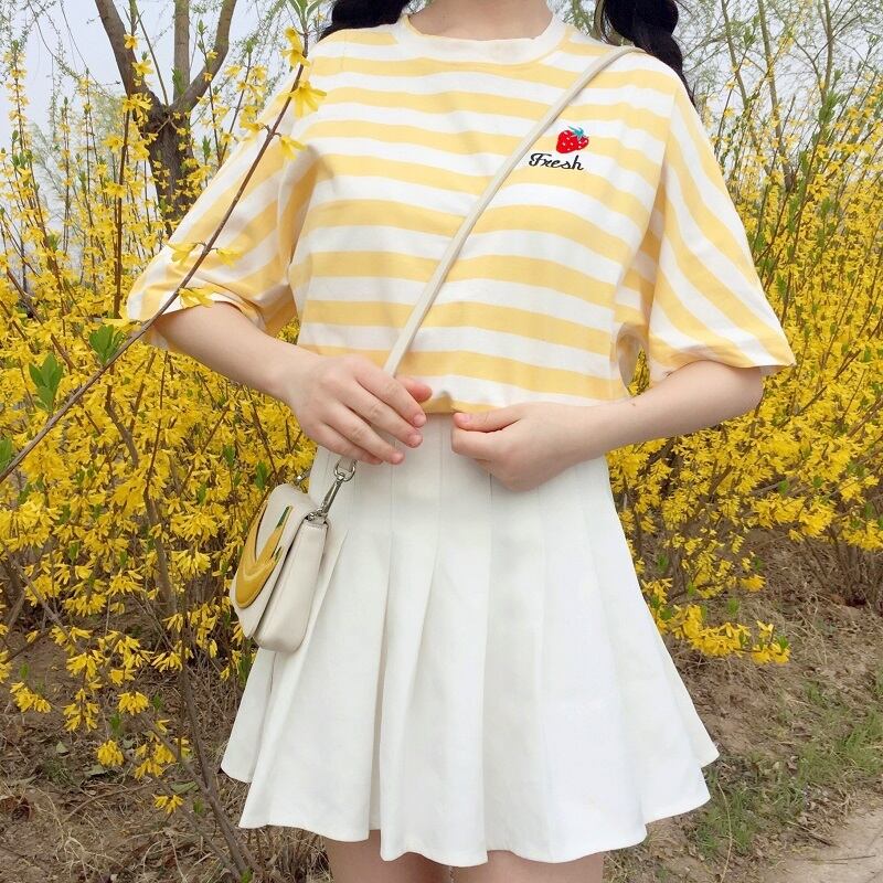 ✞ Tシャツ シャツブラウスきれいめ☆ストライプラウンドネック刺繍 大人ガーリー スウィート キュート カジュアル ✞ゴスロリ SM ミリ 甘ロリ クラロリ 和ロリ エレガント 黒ロリ 姫ロリ 華ロリ BB-BB0432038