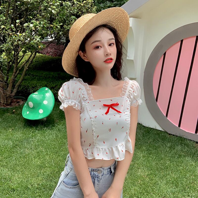 ✞ ショートスリム花柄シフォンシャツブラウス 大人ガーリー スウィート キュート カジュアル スクウェア ✞ゴスロリ SM ミリ 甘ロリ クラロリ 和ロリ エレガント 黒ロリ 姫ロリ 華ロリ BB-BB9612021