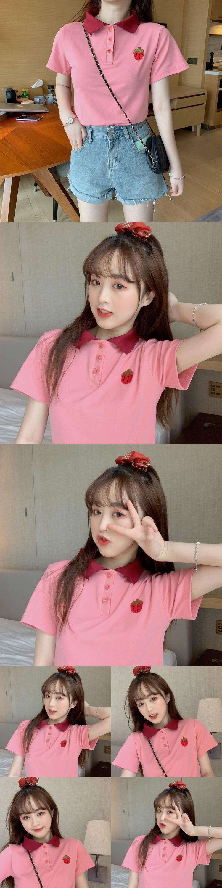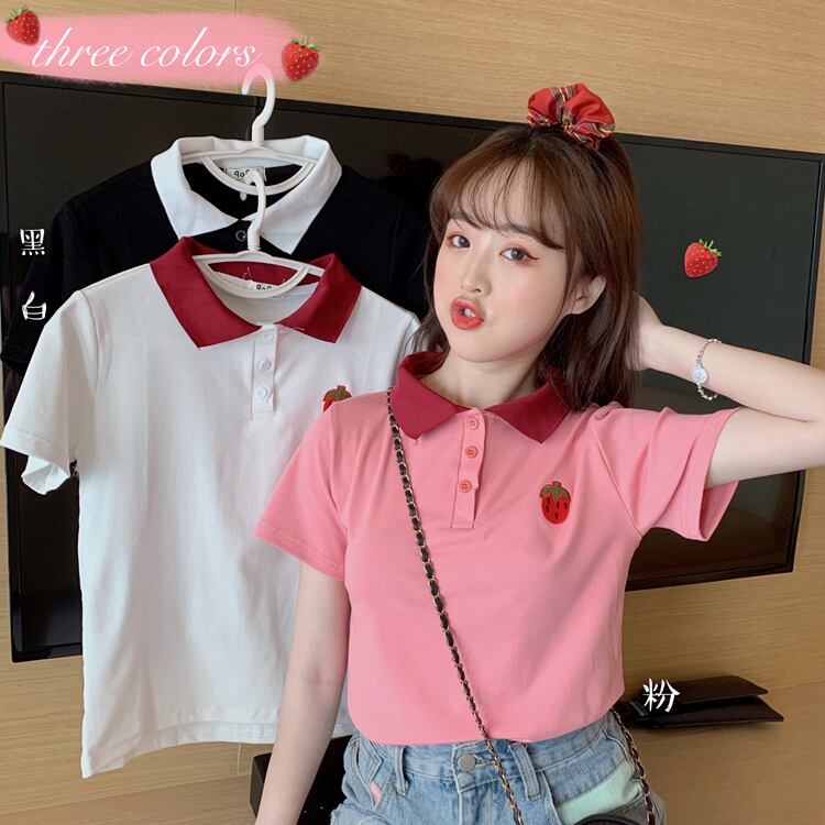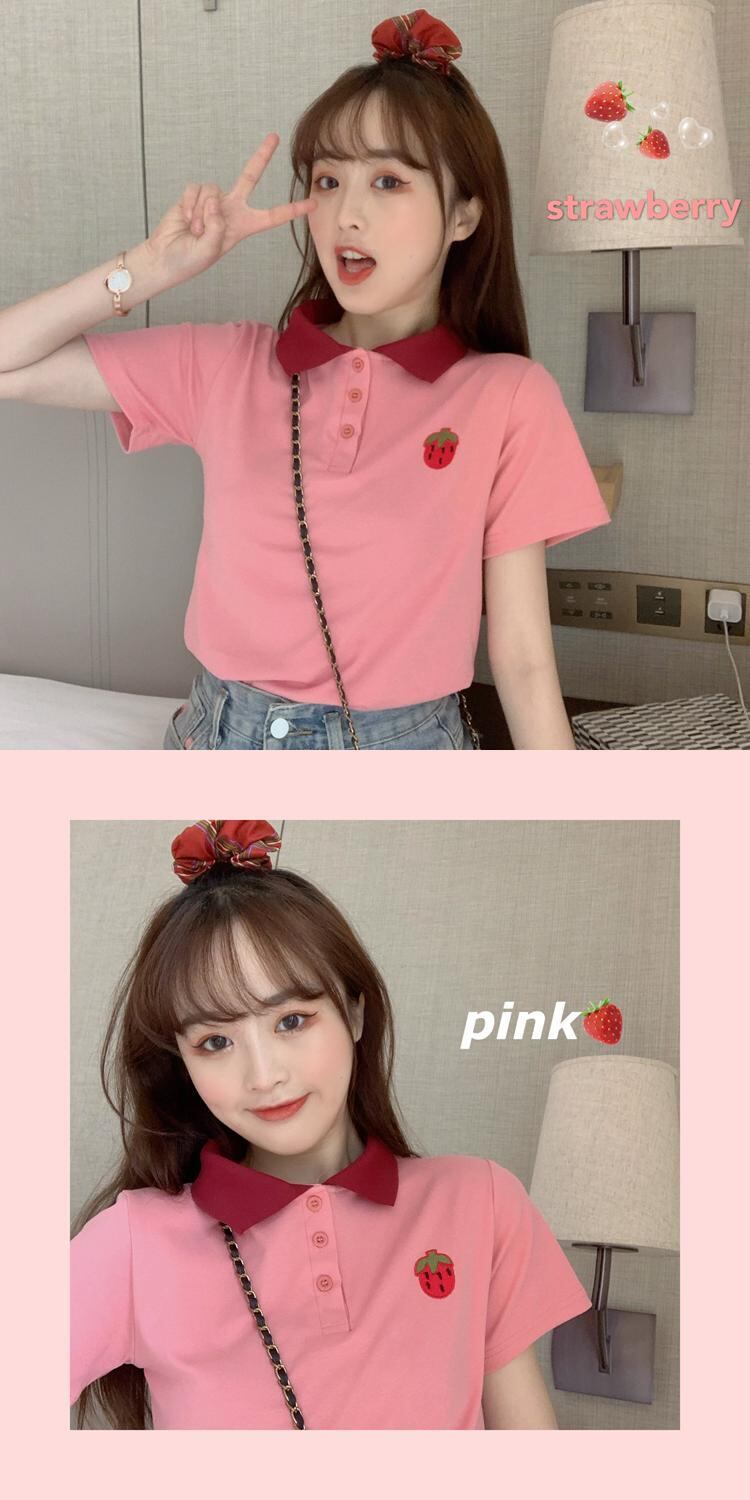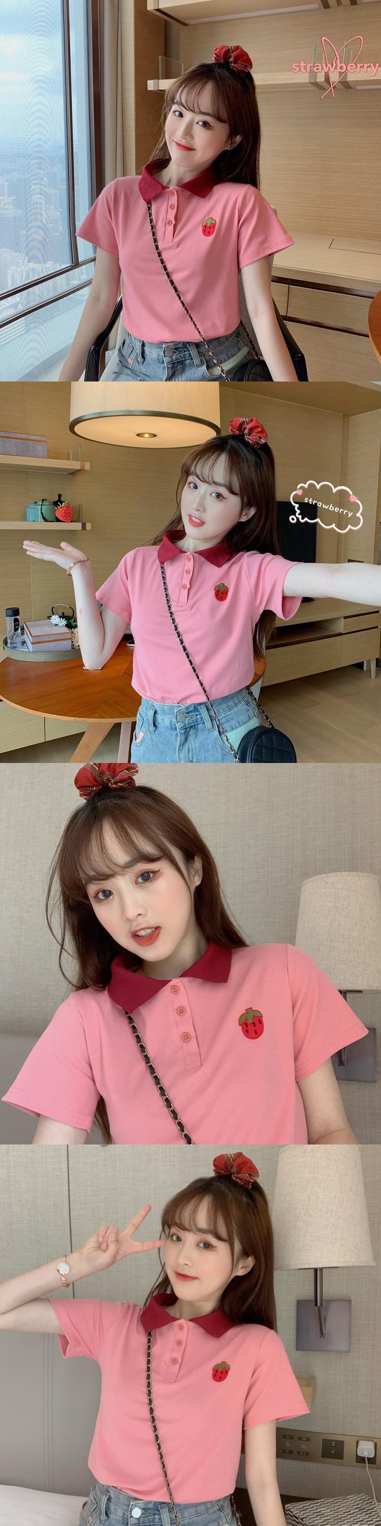 ✞ いちご刺繍カラーTシャツ ポロシャツ 大人ガーリー スウィート キュート カジュアル ✞ゴスロリ SM ミリ 甘ロリ クラロリ 和ロリ エレガント 黒ロリ 姫ロリ 華ロリ BB-BB1414706