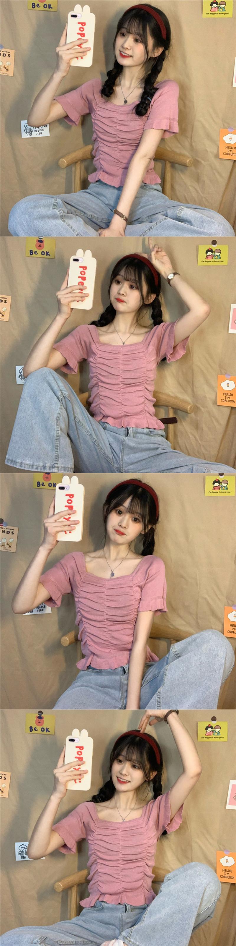 ✞ Tシャツ プリーツ♬カワイイ♥セーター トップス スクウェア ✞ゴスロリ SM ミリ 甘ロリ クラロリ 和ロリ エレガント 黒ロリ 姫ロリ 華ロリ BB-BB3314257