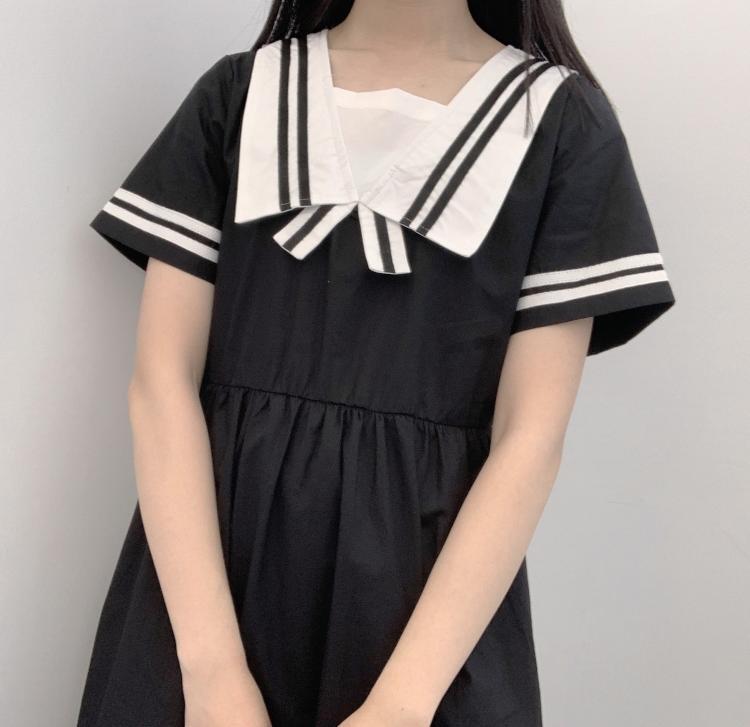 ✞ きれいめ☆スタンダードネイビー♬カワイイ♥ブラックホワイトカラー レトロ ステッチ ✞ゴスロリ SM ミリ 甘ロリ クラロリ 和ロリ エレガント 黒ロリ 姫ロリ 華ロリ BB-BB8482050