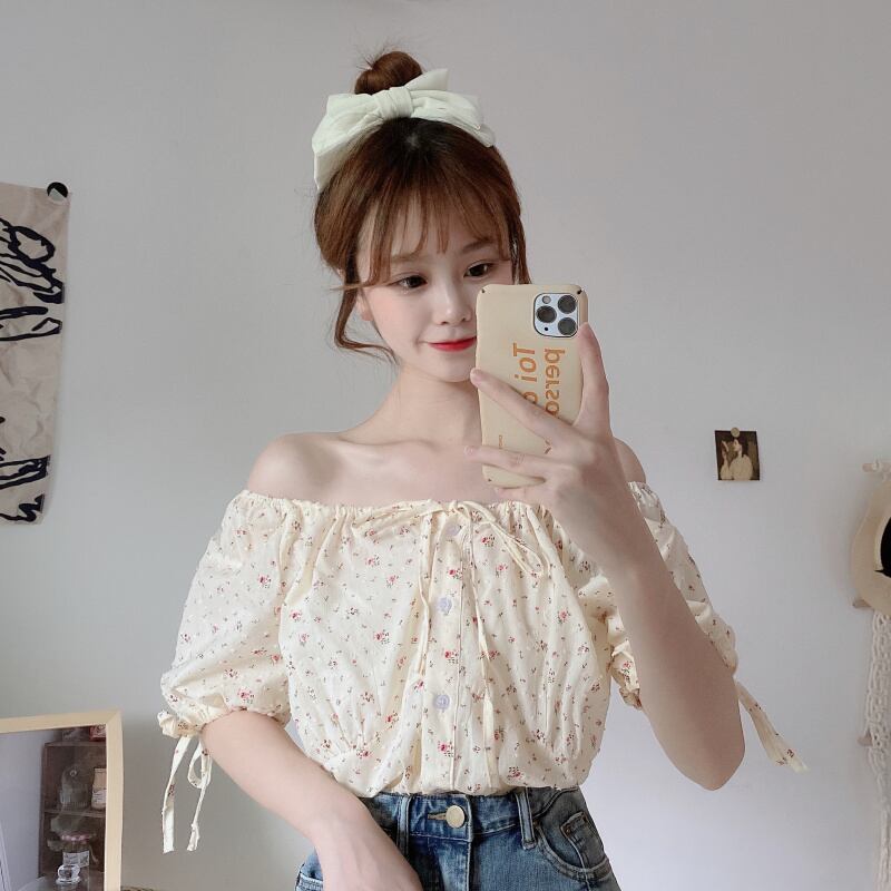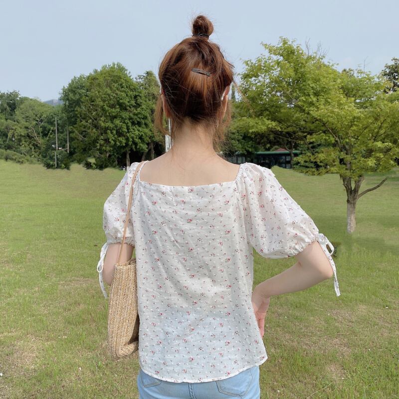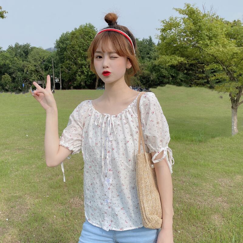 ✞ 花柄リボンスリーブブレストショートシャツブラウス大人女子☆ 大人ガーリー スウィート キュート カジュアル ✞ゴスロリ SM ミリ 甘ロリ クラロリ 和ロリ エレガント 黒ロリ 姫ロリ 華ロリ BB-BB4953396
