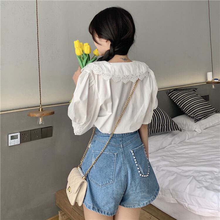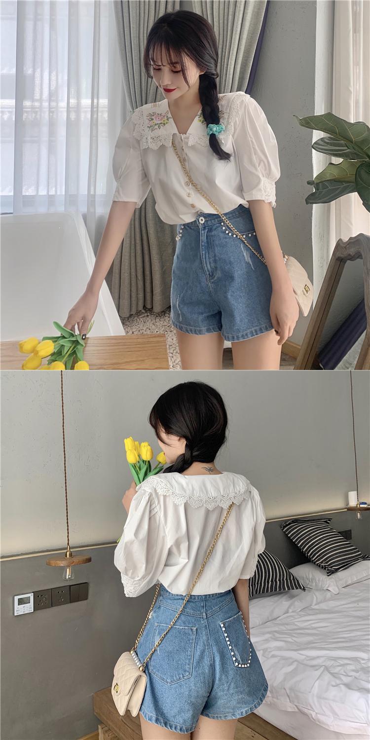 ✞ レーススリーブ半袖シャツブラウス ショート ハーフスリーブ 刺繍 大人ガーリー スウィート キュート カジュアル ✞ゴスロリ SM ミリ 甘ロリ クラロリ 和ロリ エレガント 黒ロリ 姫ロリ 華ロリ BB-BB6742649