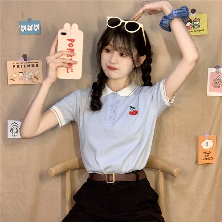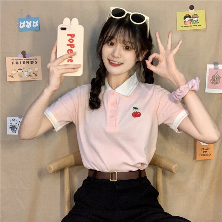 ✞ チェリー刺繍カラーボタンシャツ スウィート キュート カジュアル ✞ゴスロリ SM ミリ 甘ロリ クラロリ 和ロリ エレガント 黒ロリ 姫ロリ 華ロリ BB-BB7135177