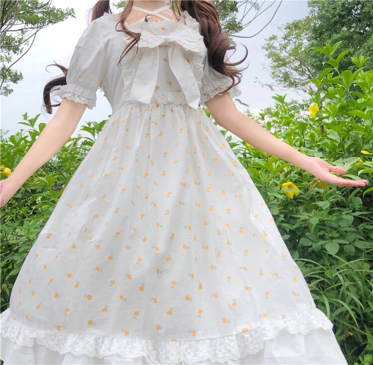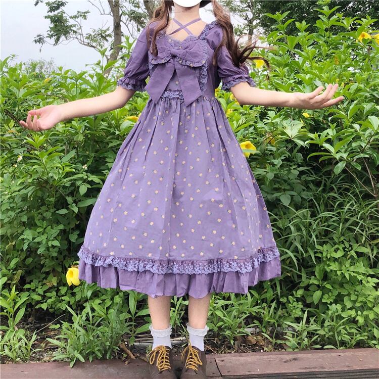 ✞レースりぼんドットパフスリーブワンピースドレスOP パープル ホワイト 大人ガーリー スウィート キュート カジュアル スクウェア ✞ゴスロリ SM ミリ 甘ロリ クラロリ 和ロリ エレガント 黒ロリ 姫ロリ 華ロリ BB-BB0822017