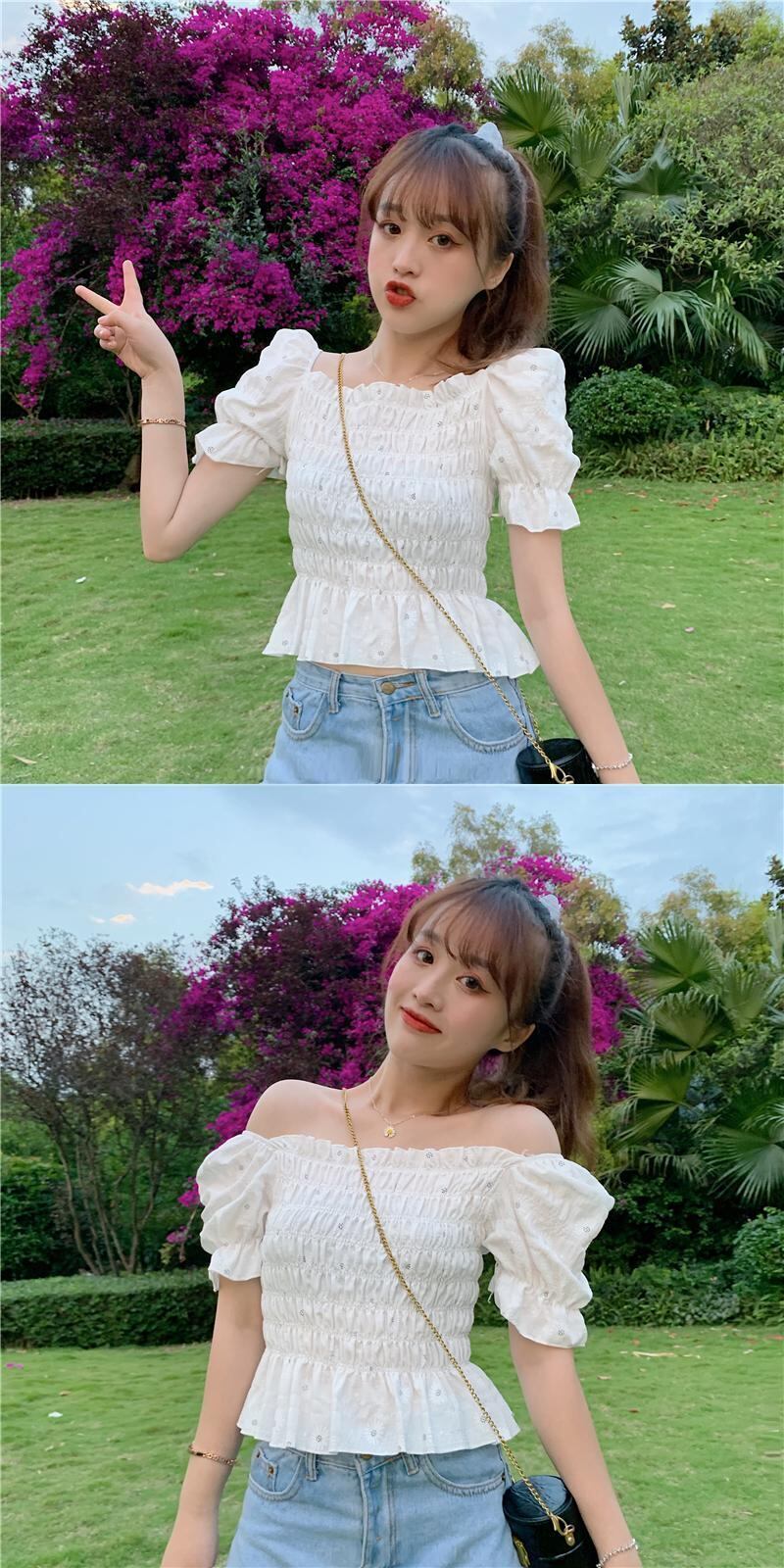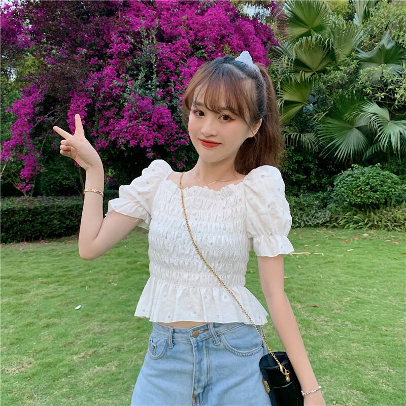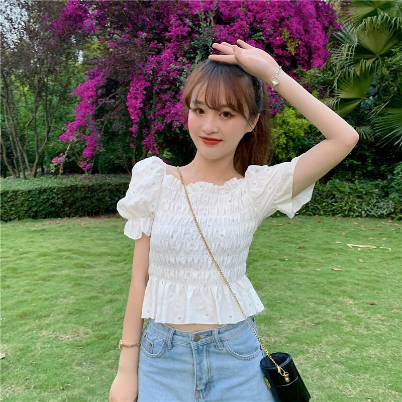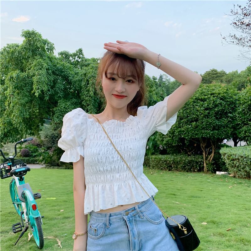 ✞ ショートシャツブラウスプリントスリーブウエストすっきり☆着痩せ 大人ガーリー スウィート キュート カジュアル スクウェア ✞ゴスロリ SM ミリ 甘ロリ クラロリ 和ロリ エレガント 黒ロリ 姫ロリ 華ロリ BB-BB7785306