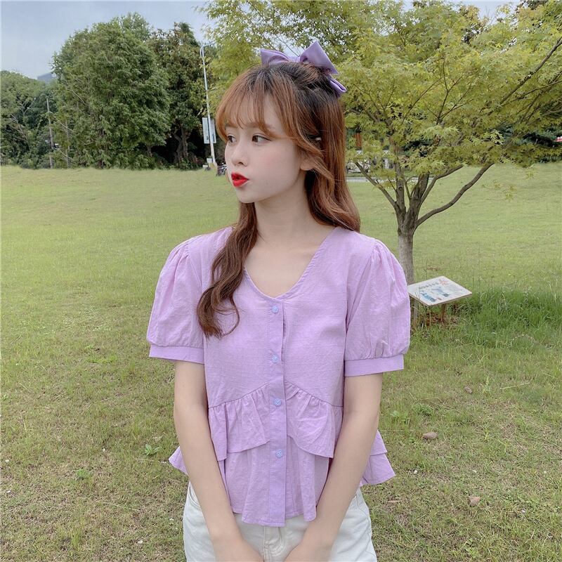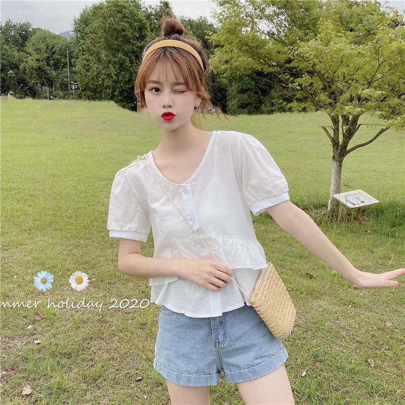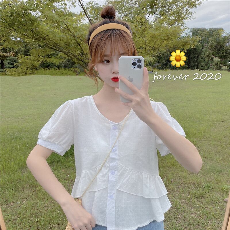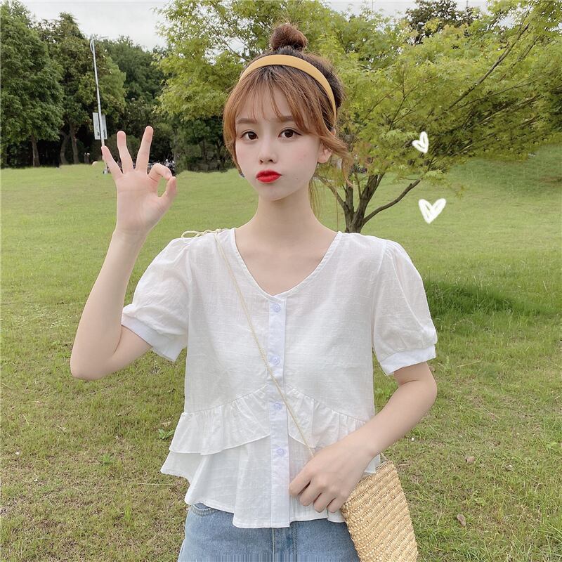 ✞ シャツブラウスVネックブレストラッフルショートトップス ステッチ ✞ゴスロリ SM ミリ 甘ロリ クラロリ 和ロリ エレガント 黒ロリ 姫ロリ 華ロリ BB-BB1475487