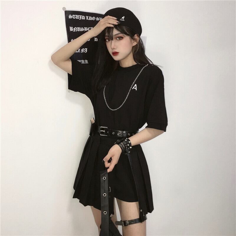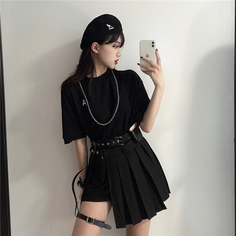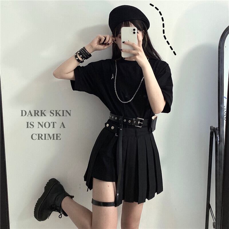 ✞ ダークソリッド カラーロングTシャツ プリーツスカート ショート ラウンドネック ソリッドカラー ✞ゴスロリ SM ミリ 甘ロリ クラロリ 和ロリ エレガント 黒ロリ 姫ロリ 華ロリ BB-BB0180534