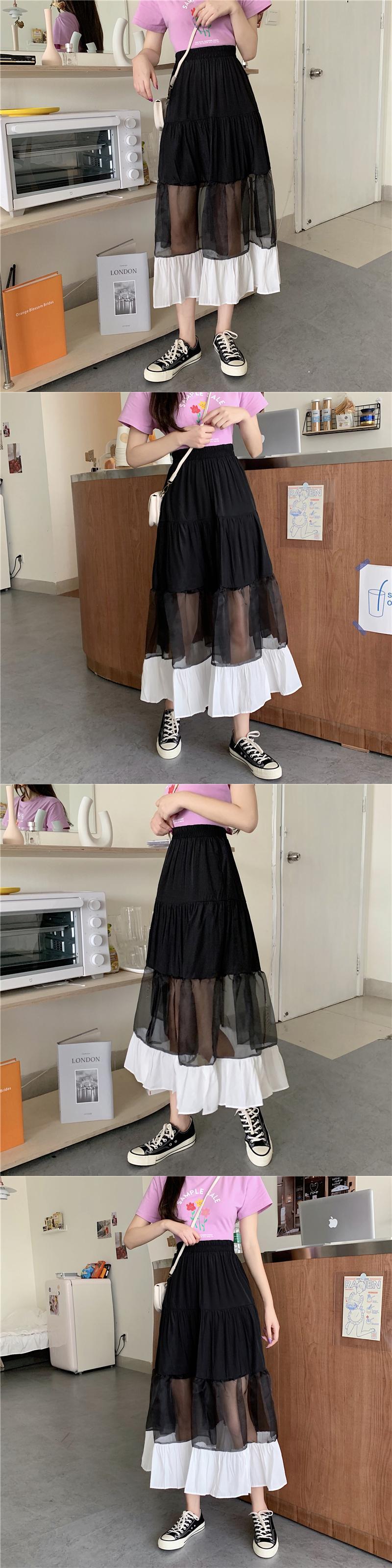 ✞ ♬カワイイ♥メッシュカラーロングAライン エラスティック 伸縮 スカート ステッチ ✞ゴスロリ SM ミリ 甘ロリ クラロリ 和ロリ エレガント 黒ロリ 姫ロリ 華ロリ BB-BB2853424