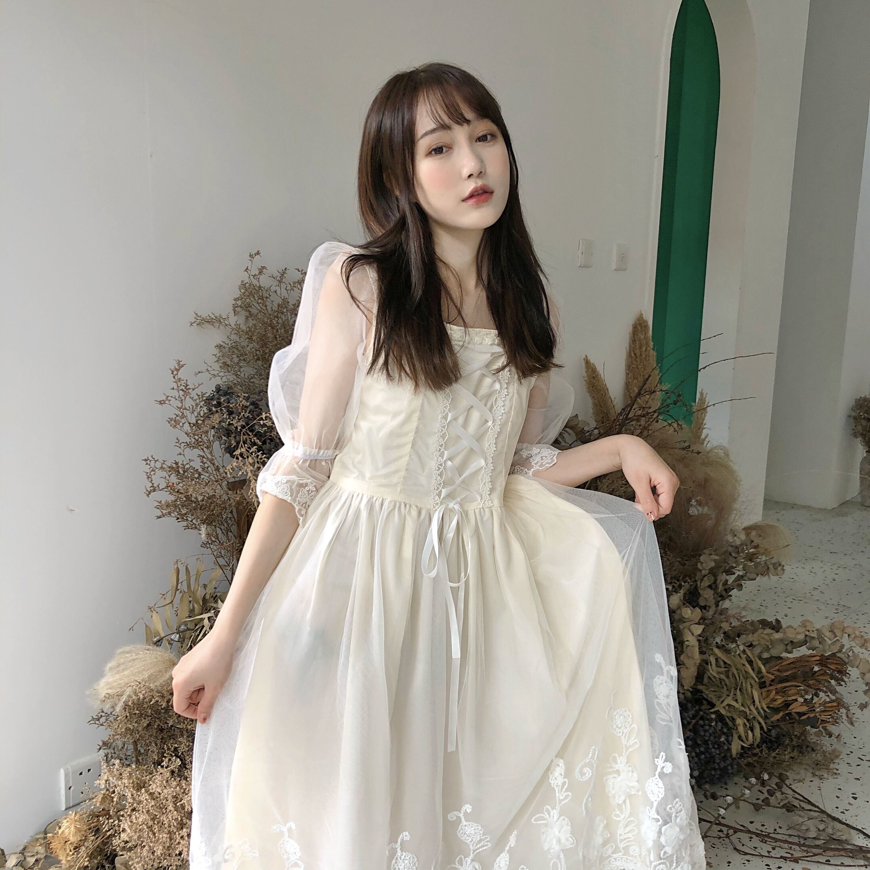 ✞ ロングスカート メッシュスリーブレース 大人ガーリー スウィート キュート カジュアル スクウェア ステッチ ✞ゴスロリ SM ミリ 甘ロリ クラロリ 和ロリ エレガント 黒ロリ 姫ロリ 華ロリ BB-BB8179534