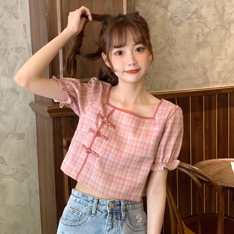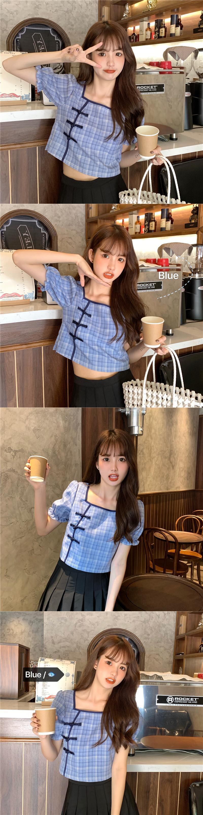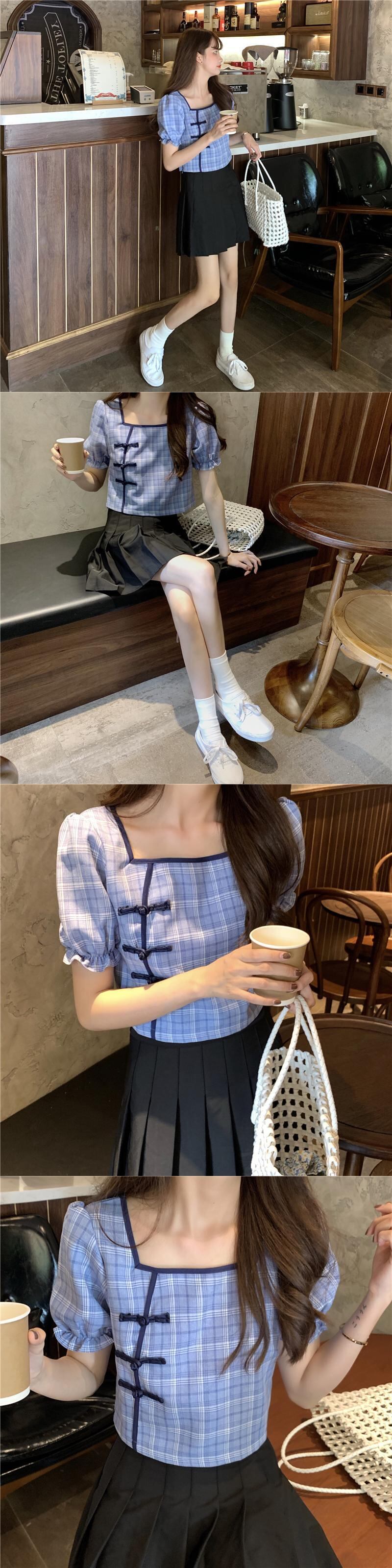 ✞ ショートスリーブシャツブラウスきれいめ☆♬カワイイ♥スタンダードチェック柄バックル レトロ 大人ガーリー スウィート キュート カジュアル スクウェア ✞ゴスロリ SM ミリ 甘ロリ クラロリ 和ロリ エレガント 黒ロリ 姫ロリ 華ロリ BB-BB1521293