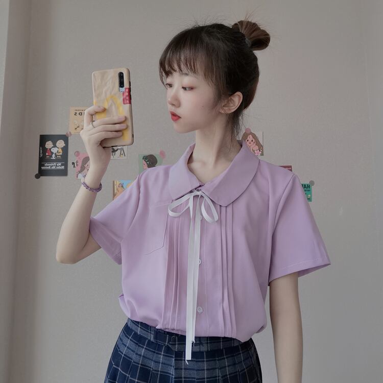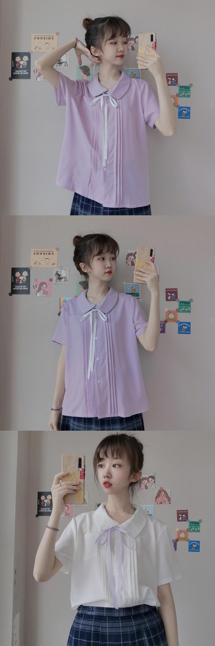 ✞ ハートソリッド カラーシャツブラウスシフォン半袖スリーブトップス サマー ショート リボン ハーフスリーブ 大人ガーリー スウィート キュート カジュアル 夏物 ソリッドカラー ✞ゴスロリ SM ミリ 甘ロリ クラロリ 和ロリ エレガント 黒ロリ 姫ロリ 華ロリ BB-BB0065868
