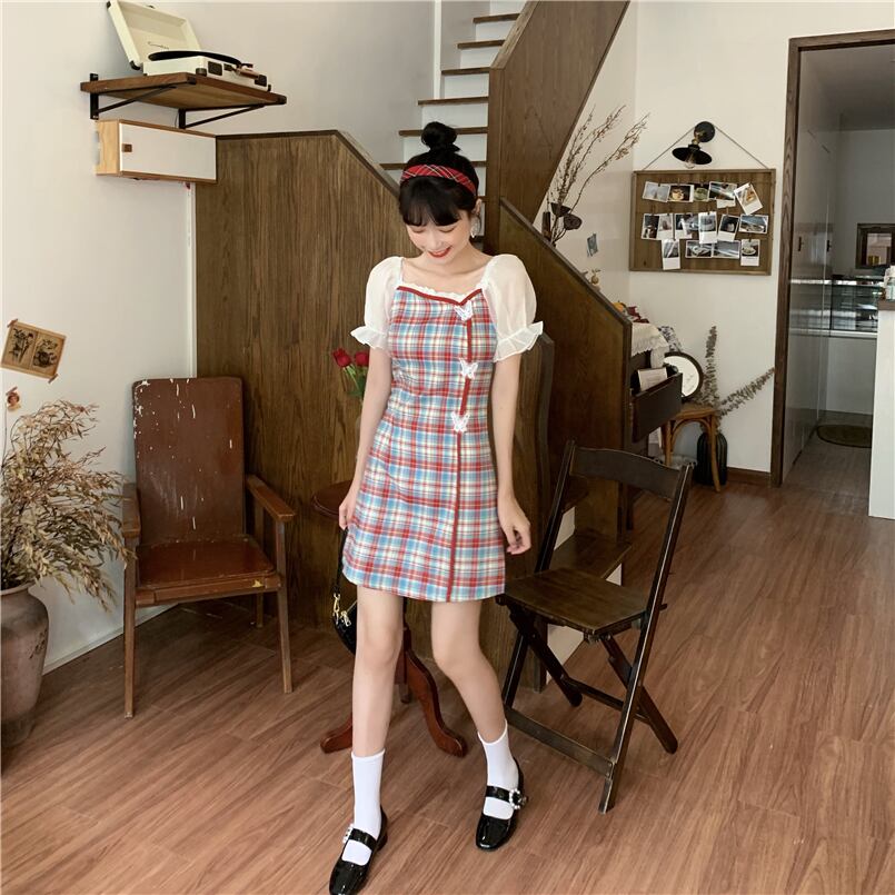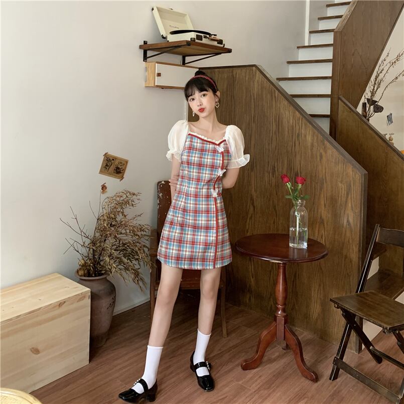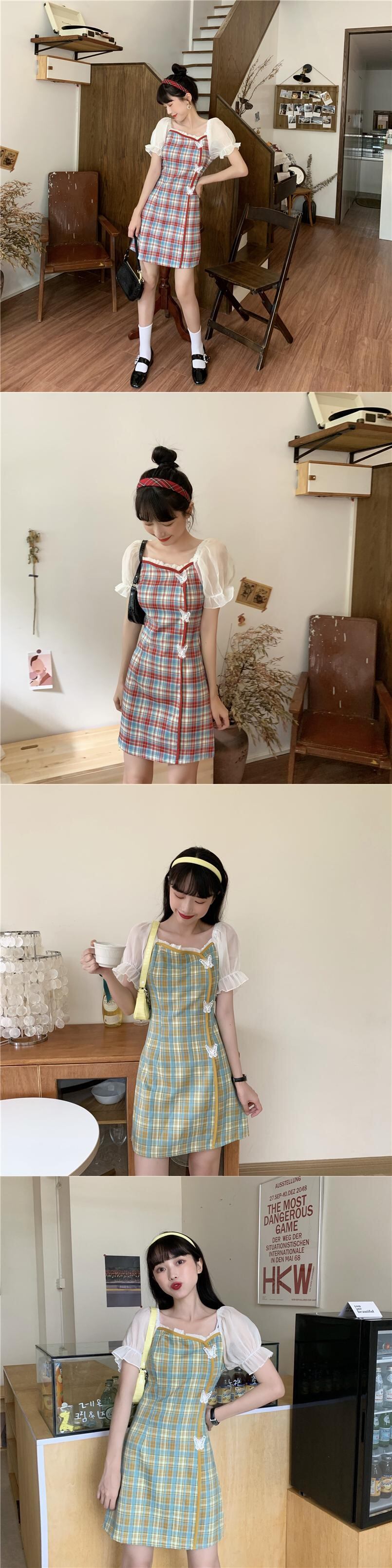 ✞ スタンダードきれいめ☆ウエストすっきり☆着痩せButterflyデザイン バックルメッシュ半袖スリーブチェック柄 ショート レトロ レース ハーフスリーブ スクウェア ステッチ ✞ゴスロリ SM ミリ 甘ロリ クラロリ 和ロリ エレガント 黒ロリ 姫ロリ 華ロリ BB-BB3288804