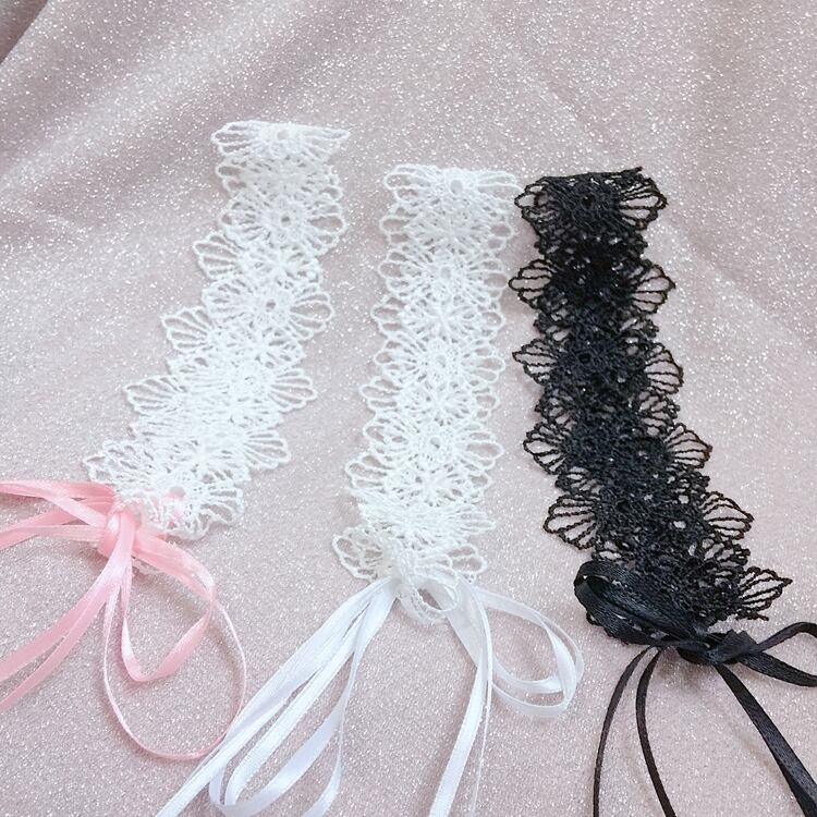 ✞ リボンネックレス レースヘアバンド ソリッド カラー ヘアアクセサリー ソリッドカラー ✞ゴスロリ SM ミリ 甘ロリ クラロリ 和ロリ エレガント 黒ロリ 姫ロリ 華ロリ BB-BB3575006