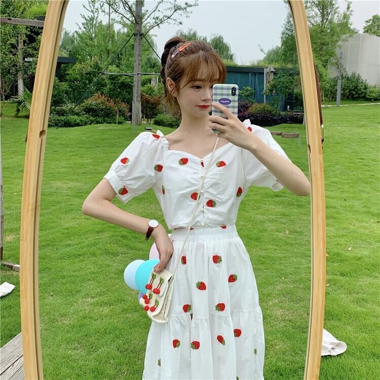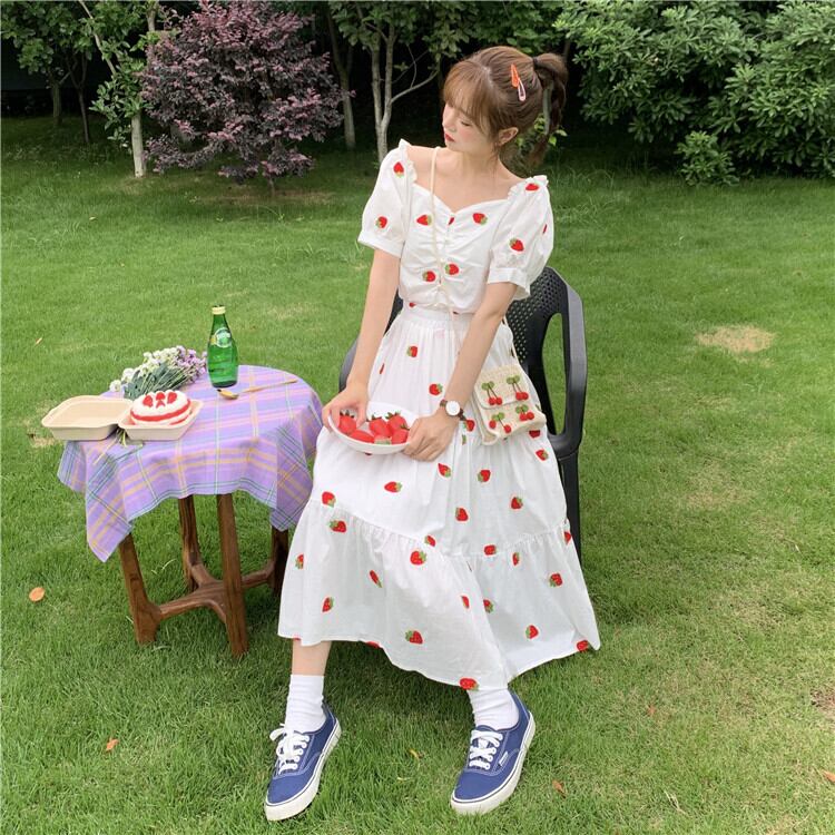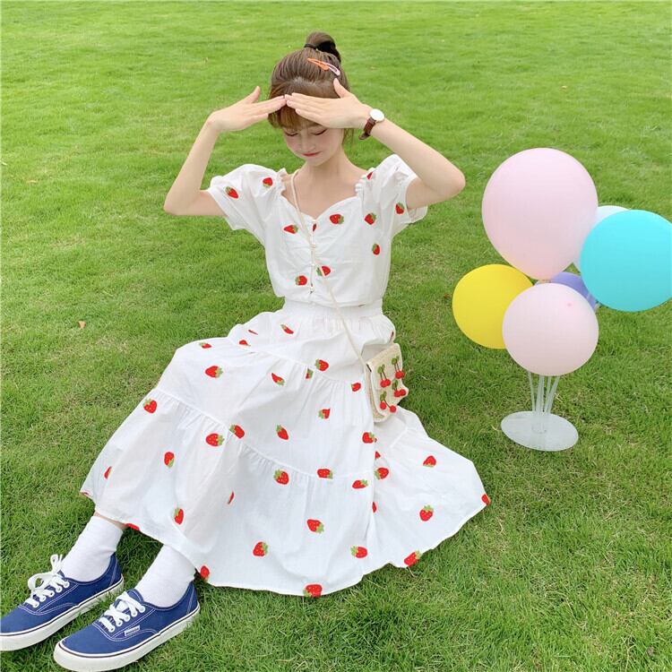 色:ストロベリートップワンピース,シングルトップ,いちごスカートワンピース,ワンピーススカート