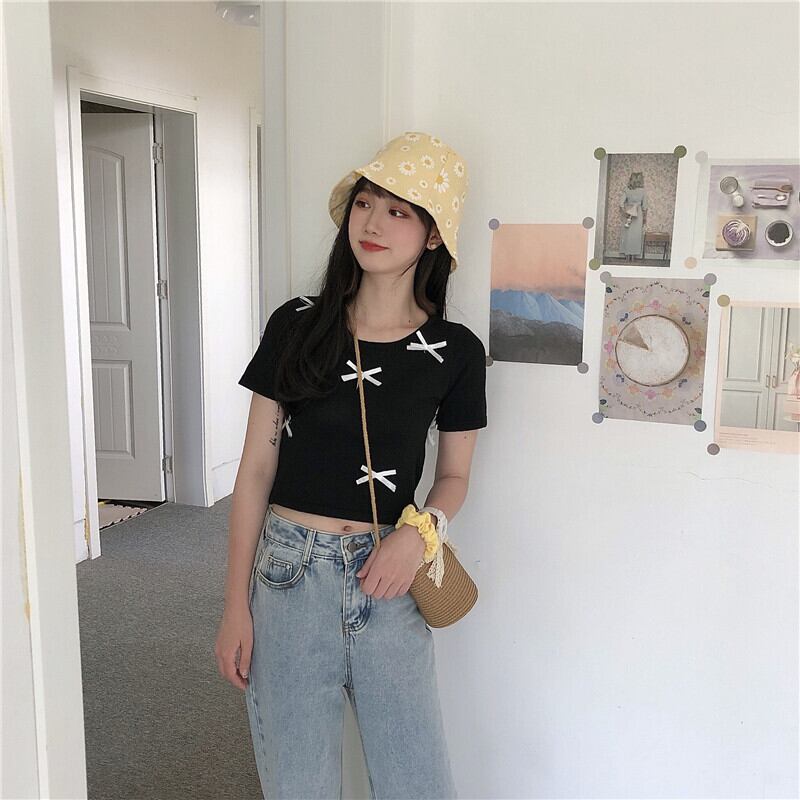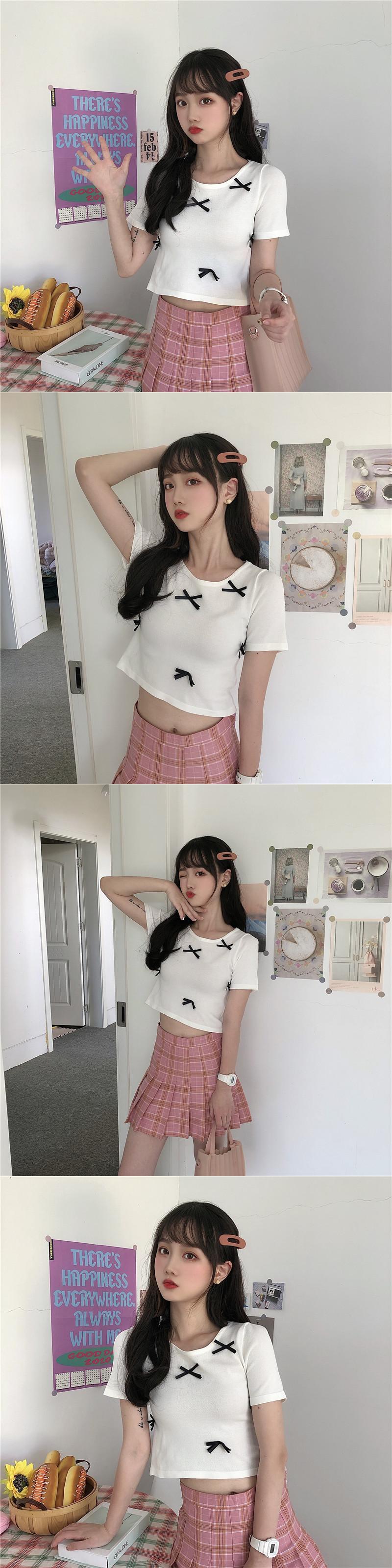 ✞ Tシャツ きれいめ☆スリムソリッド カラーラウンドネックリボンショートトップス 大人女子☆ 大人ガーリー スウィート キュート カジュアル ソリッドカラー ステッチ ✞ゴスロリ SM ミリ 甘ロリ クラロリ 和ロリ エレガント 黒ロリ 姫ロリ 華ロリ BB-BB2667878