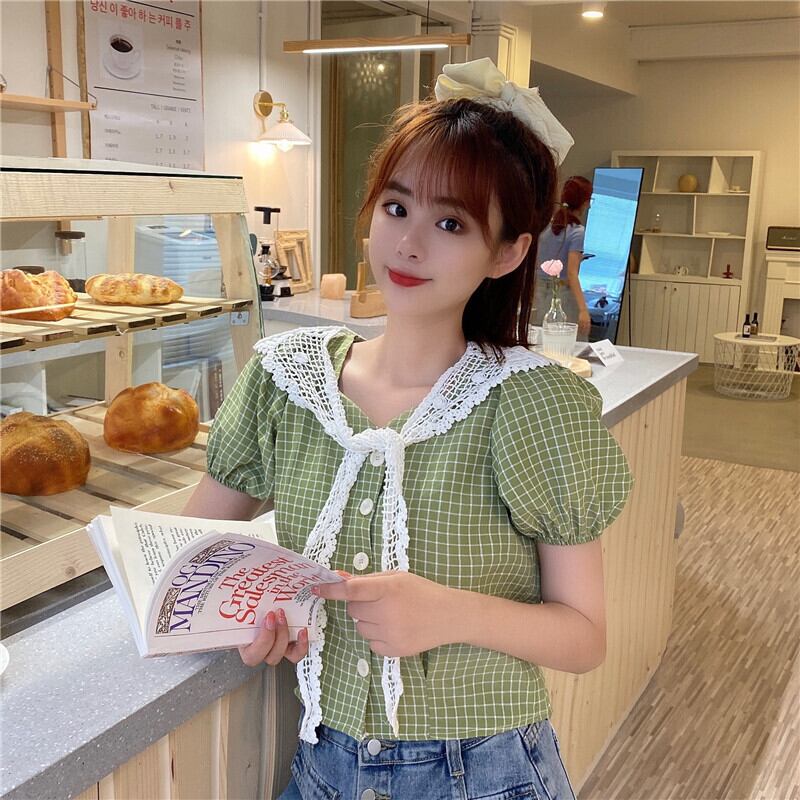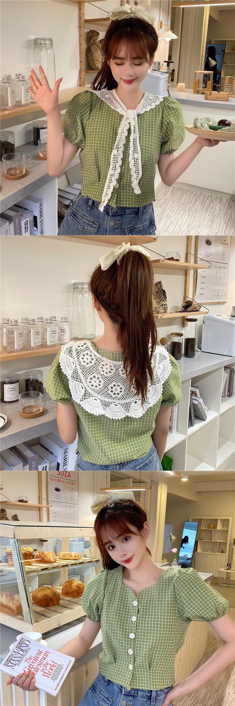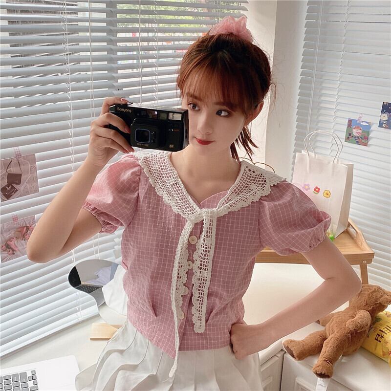 ✞ ブラウス スリーブチェック柄シャツブラウス 大人ガーリー スウィート キュート カジュアル スクウェア ✞ゴスロリ SM ミリ 甘ロリ クラロリ 和ロリ エレガント 黒ロリ 姫ロリ 華ロリ BB-BB8538805